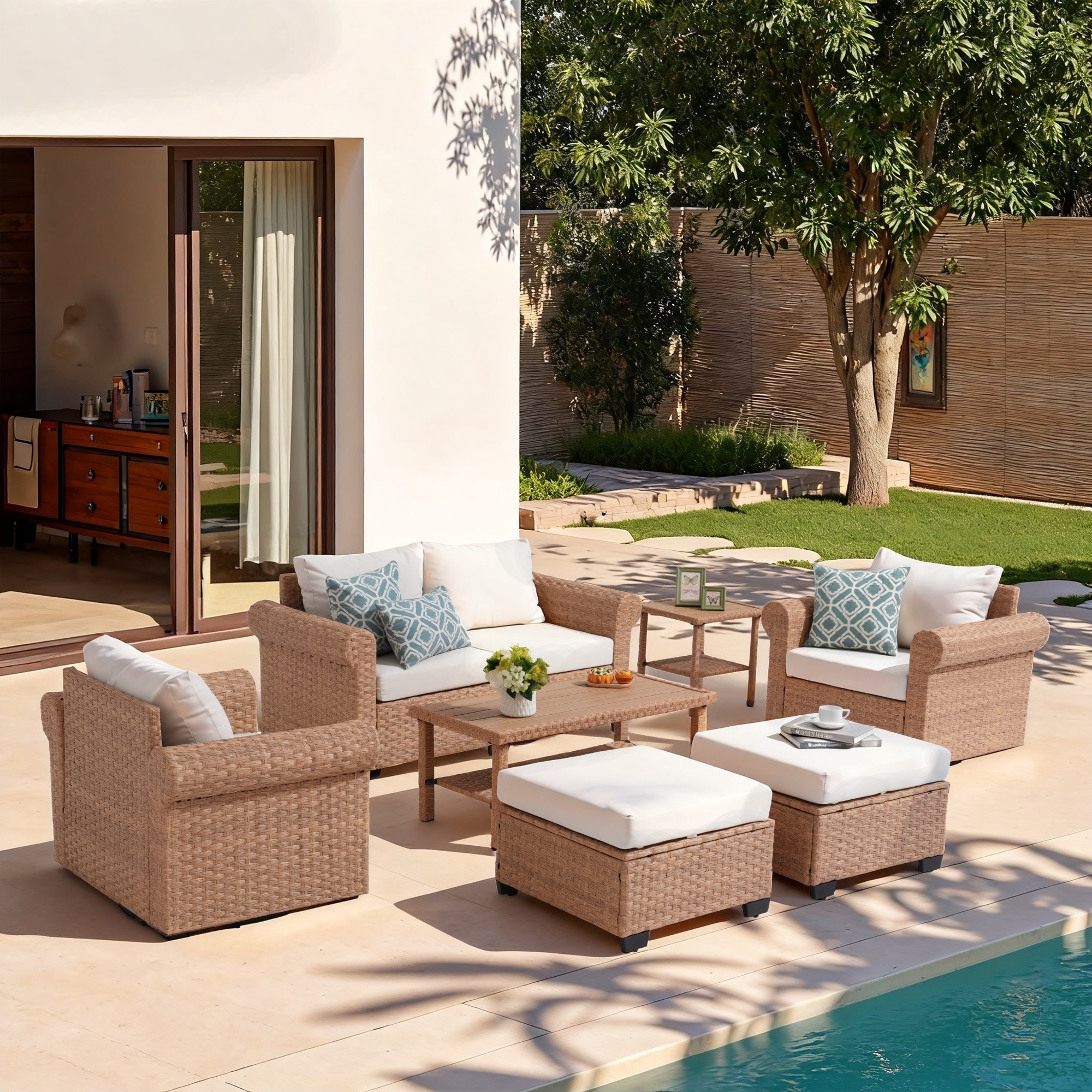 Pocassy Outdoor Brown Wicker Funitre with Cushion Set