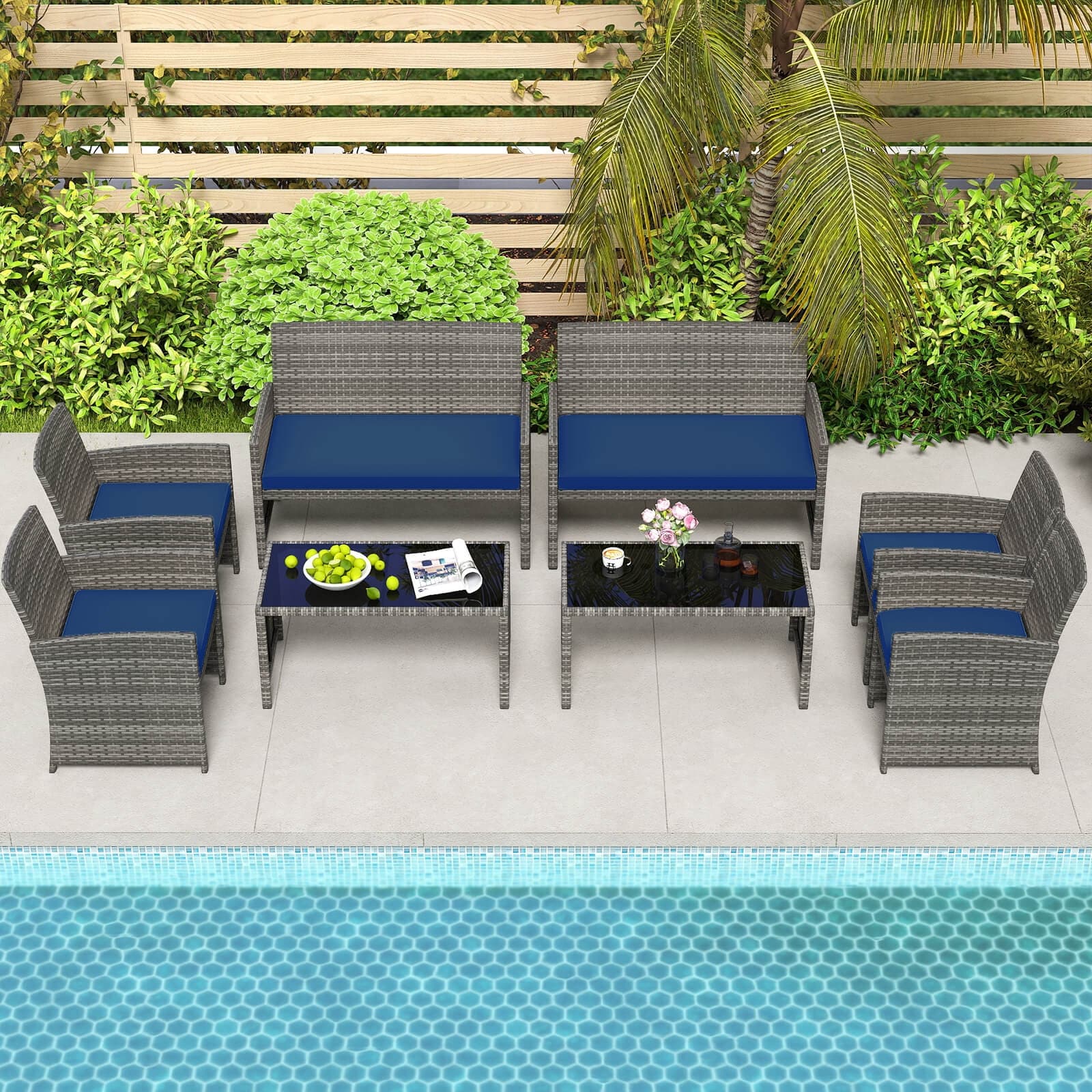 Costway 8 PCS Patio Conversation Set with Seat Cushions & Tempered - See Details