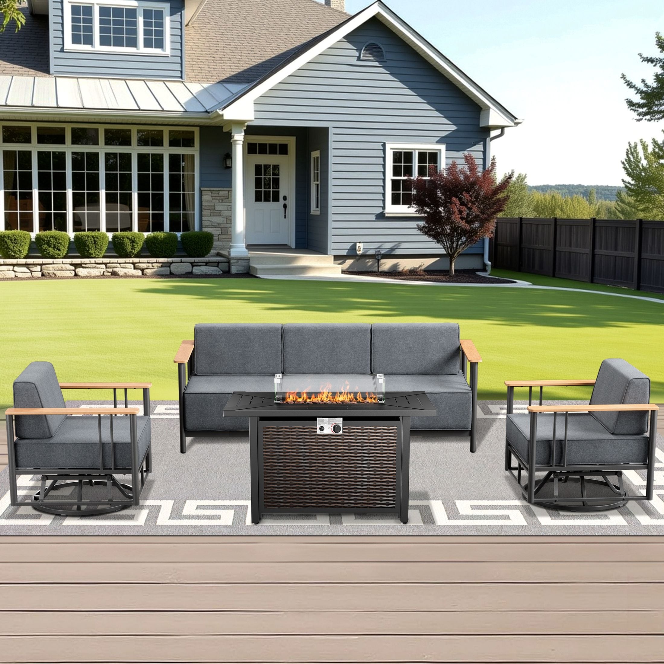 Pocassy 5 Pieces Outdoor Patio Chair with Fire Pit Table Set