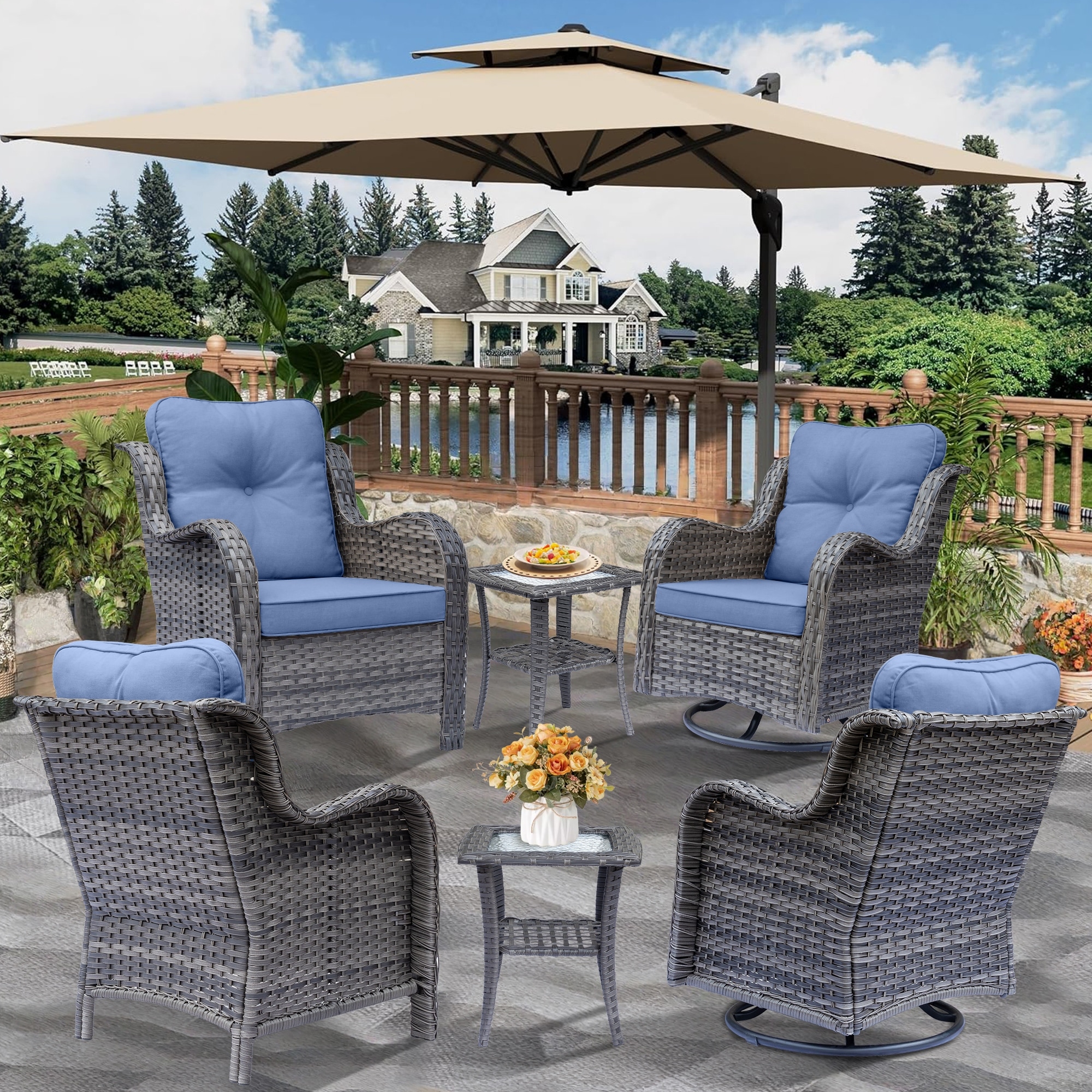6 Piece Gray Wicker Rattan Outdoor Patio Conversation Swivel Chair Set