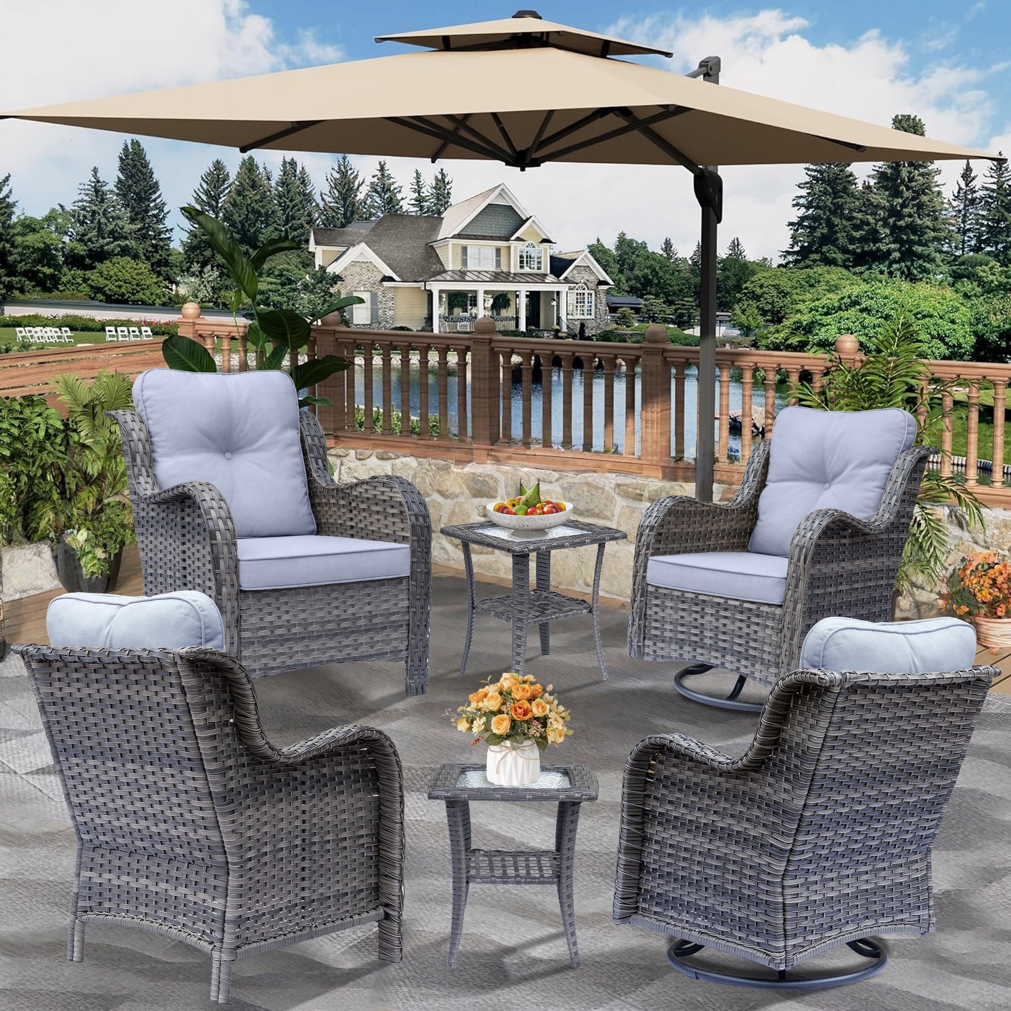 6 Piece Gray Wicker Rattan Outdoor Patio Conversation Swivel Chair Set