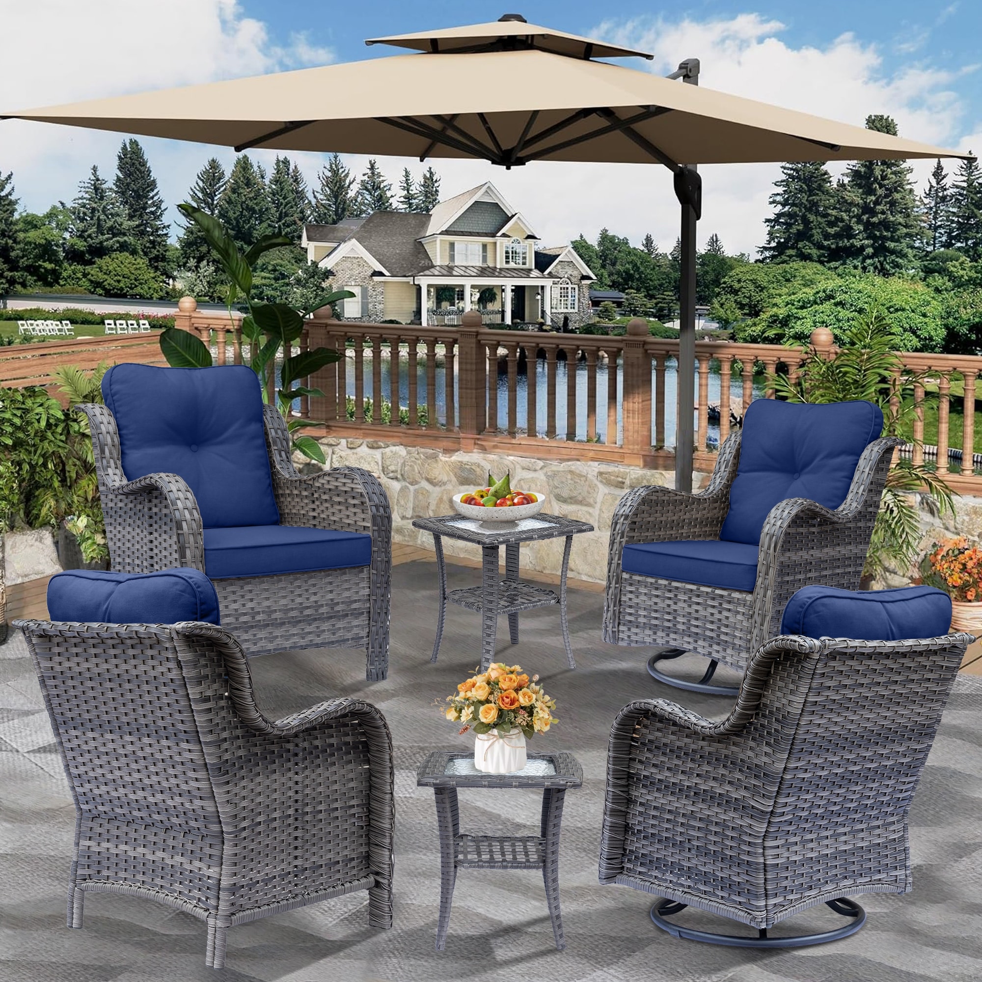 6 Piece Gray Wicker Rattan Outdoor Patio Conversation Swivel Chair Set