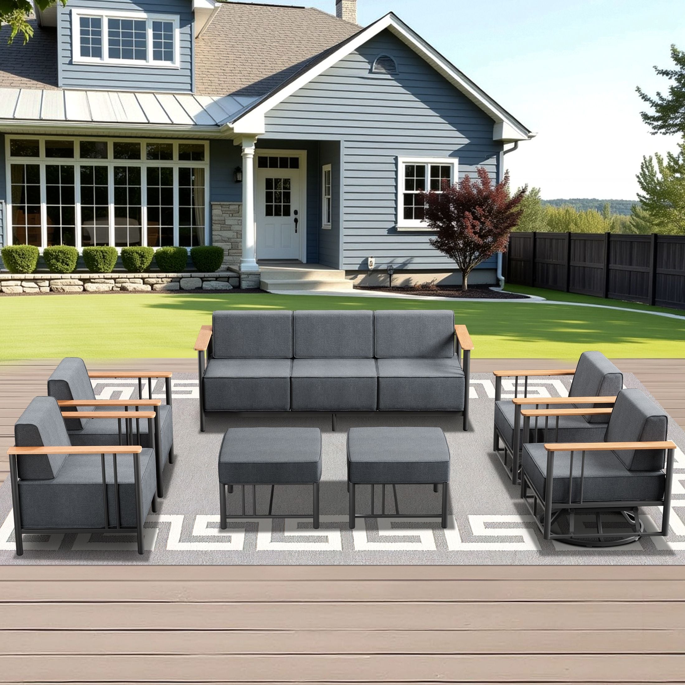 Pocassy Outdoor 6" Sofa Swivel Chair Ottoman with Fire Pit Table