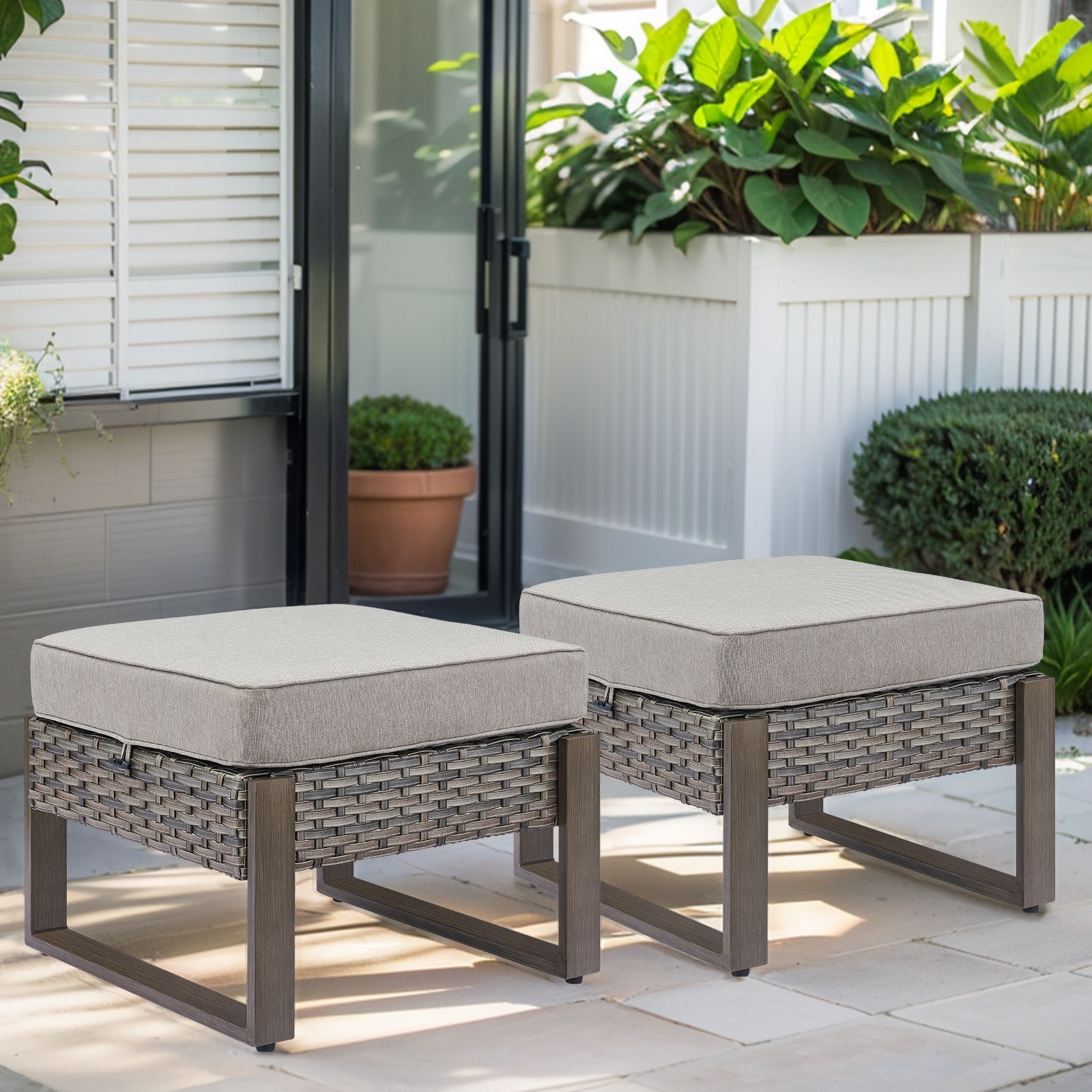 Gymojoy 2 Wicker Ottomans w/Removable Cushions