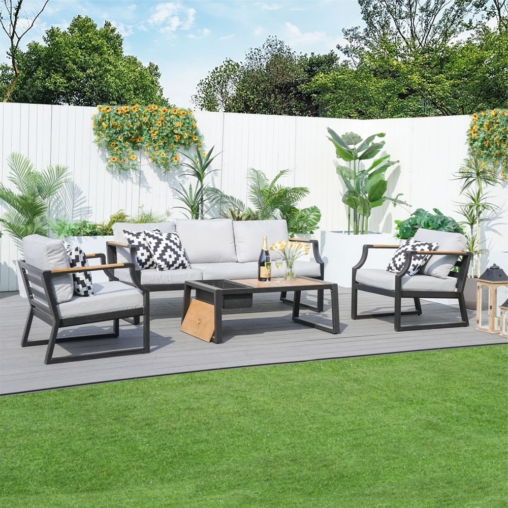 4-Piece Outdoor Aluminum Sofa Set with Coffee Table