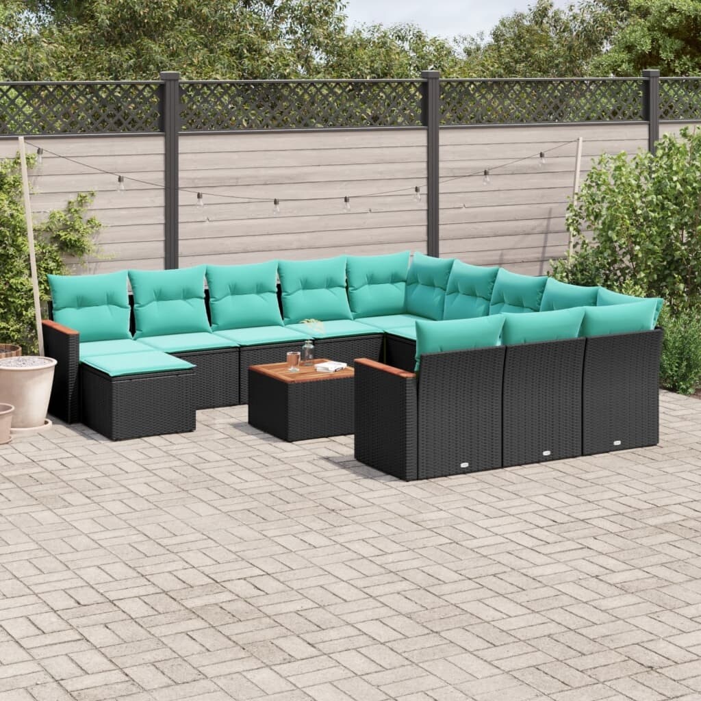 vidaXL 12 Piece Patio Sofa Set with Cushions Black Poly Rattan