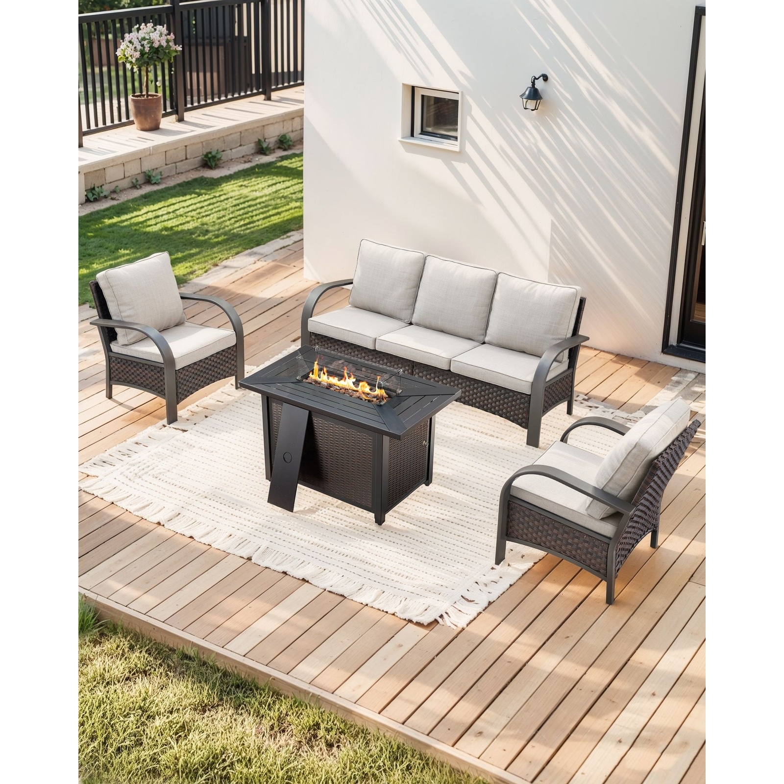 SAFAVIEH Outdoor Deacon 4-piece Conversation Patio Set. - 49" W x 30" D x 31" H