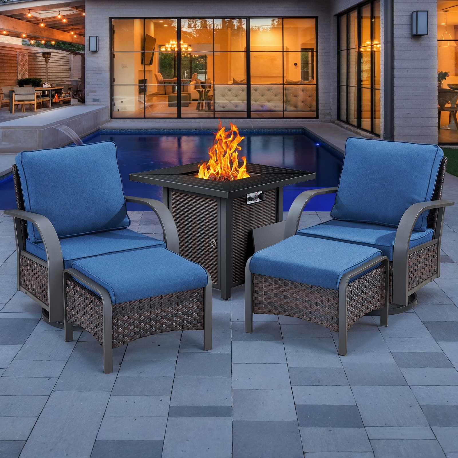 Signature Design by Ashley Paradise Trail Medium Brown/Beige Outdoor Fire Pit Table with 4 Nuvella Swivel Lounge Chairs
