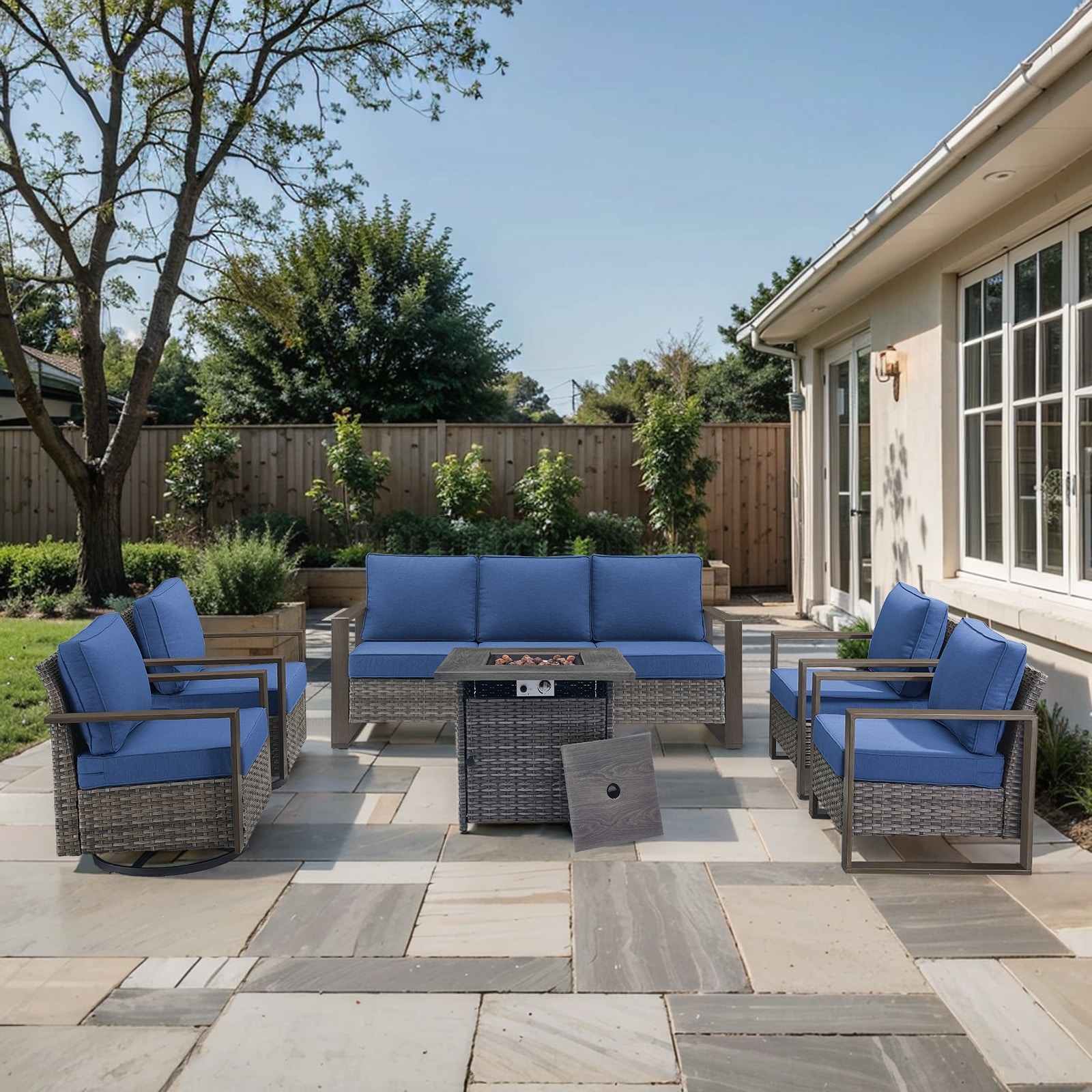 Pocassy Outdoor 30" Fire Pit Table with Sofa Swivel Chair Set