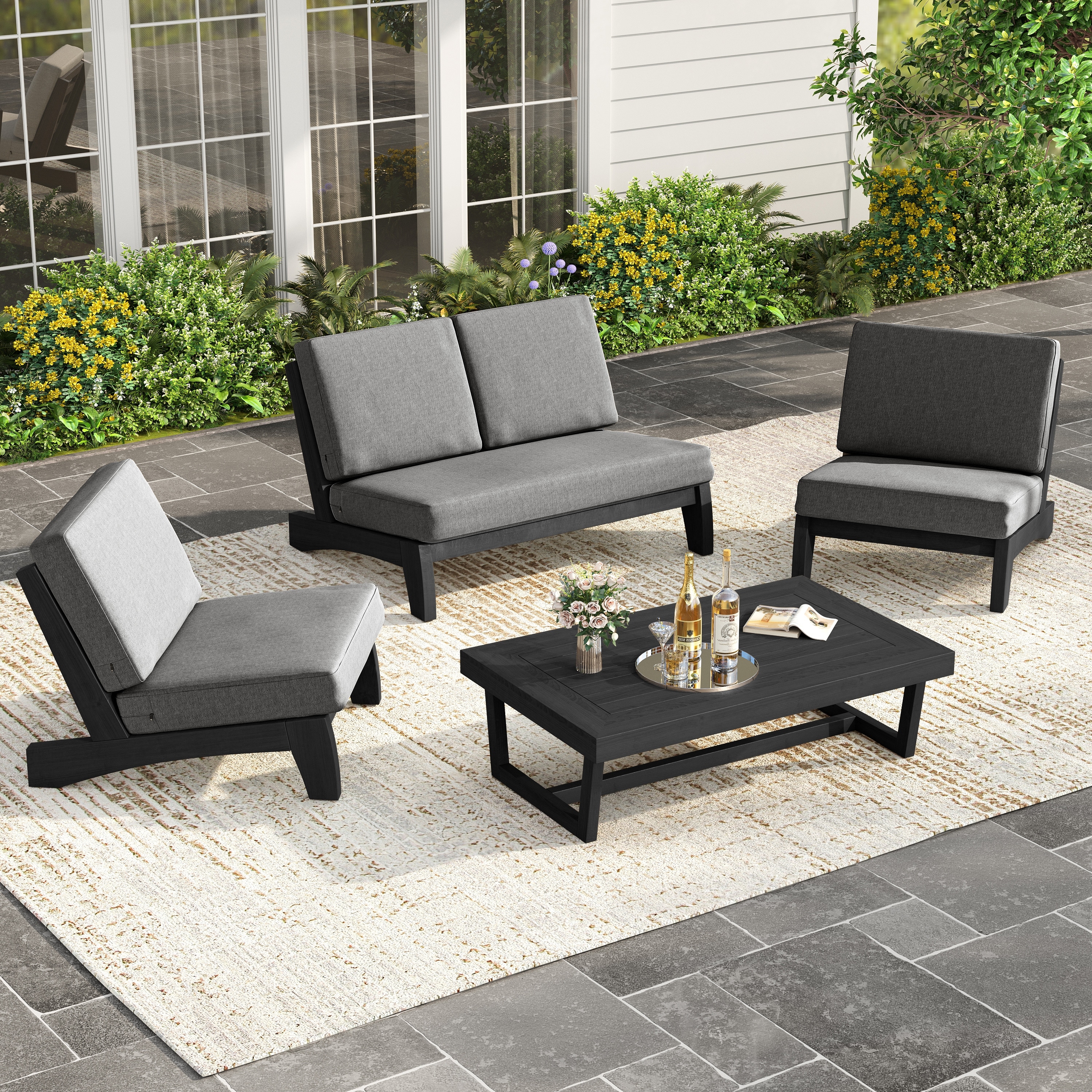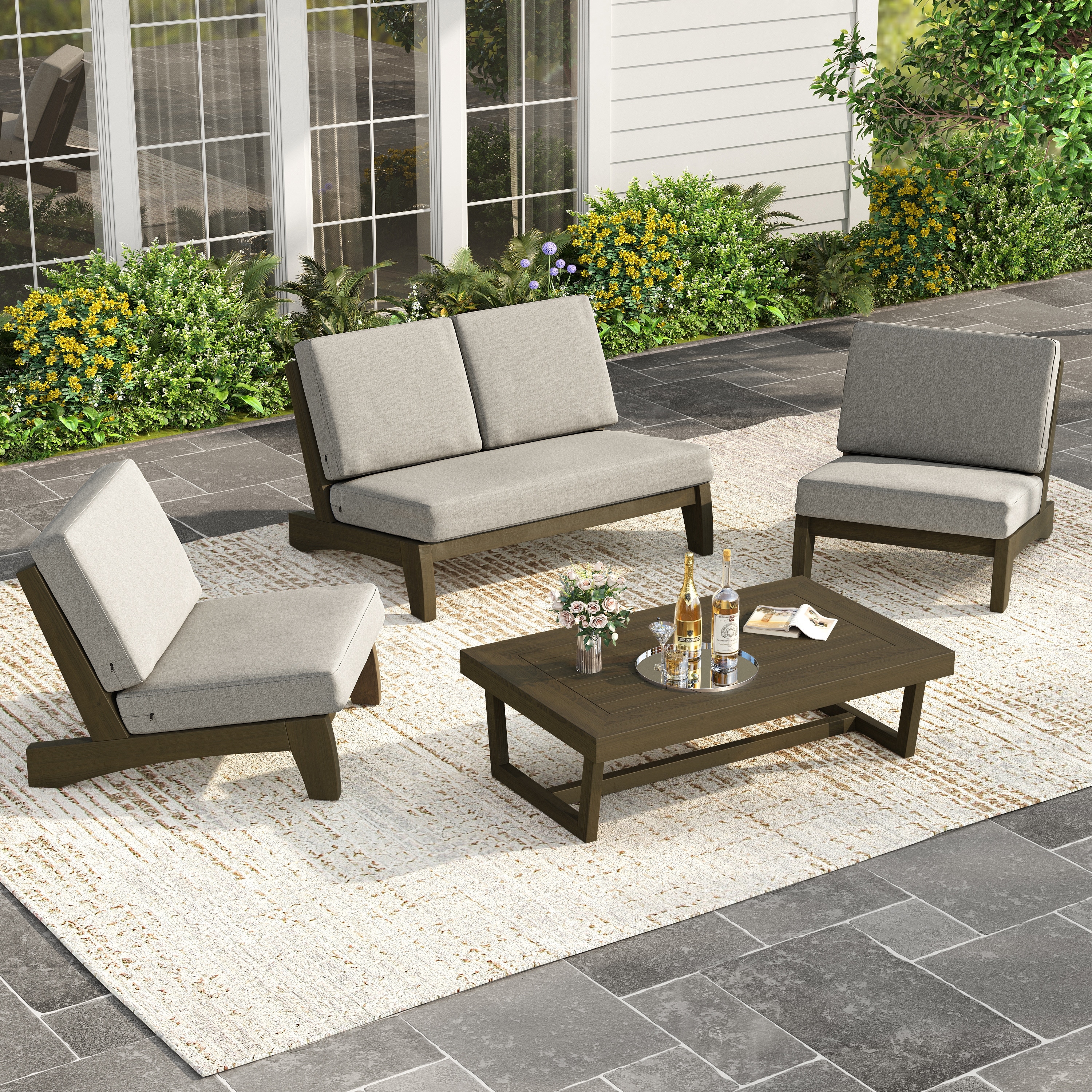 4Piece Wood Outdoor Loveseat Chair Conversation Set with Table Cushion