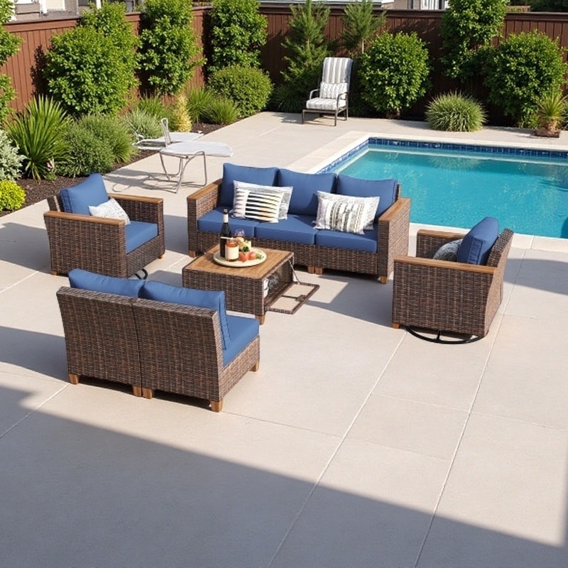 8-Piece Outdoor Patio Furniture Set with Swivel Rocking Chairs, Acacia Wood Storage Table, and Thick Cushions