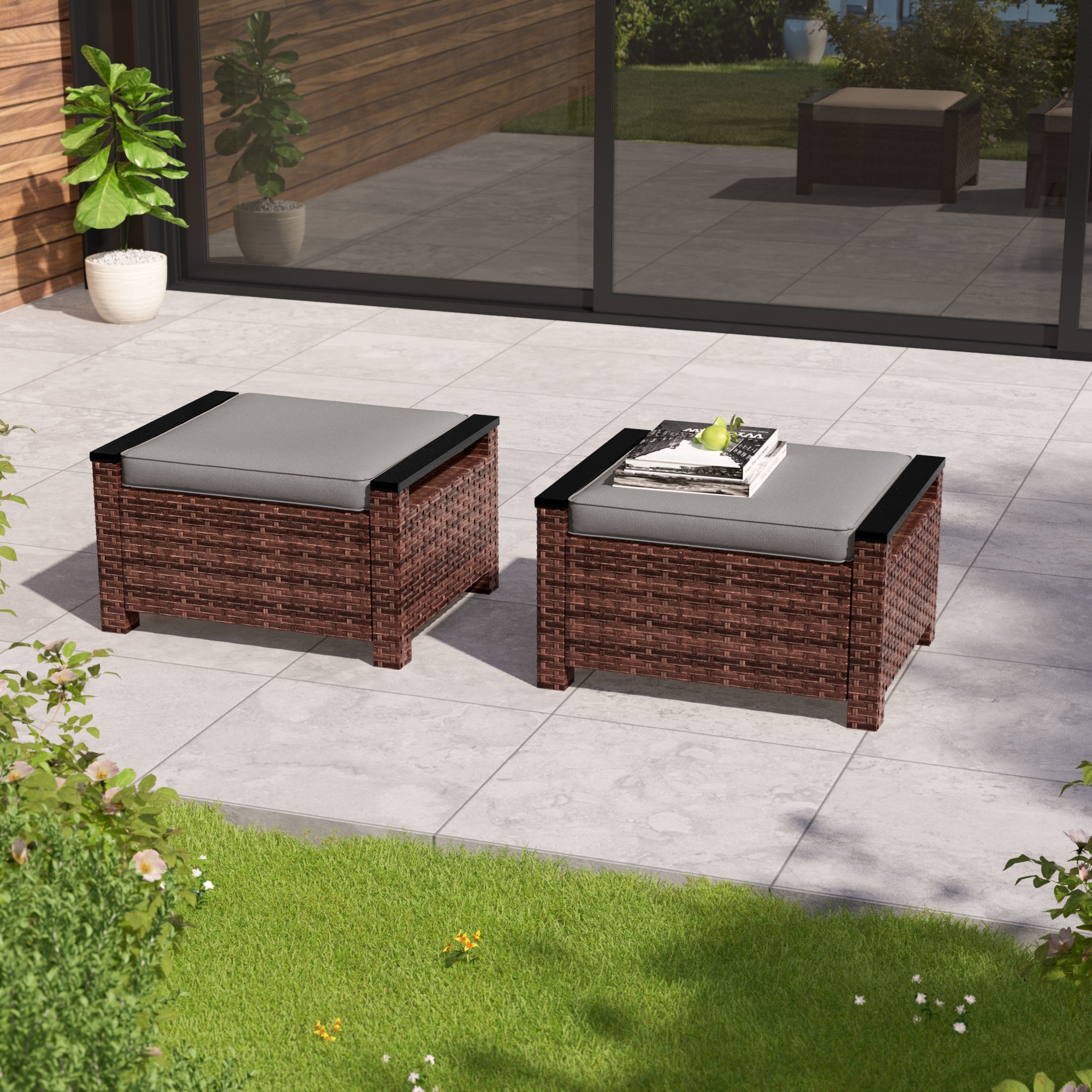 Livoosun Outdoor Patio Ottoman PE Rattan Footstool All Weather Outdoor, Wicker Rattan Ottomans with Removable Cushion, Gray