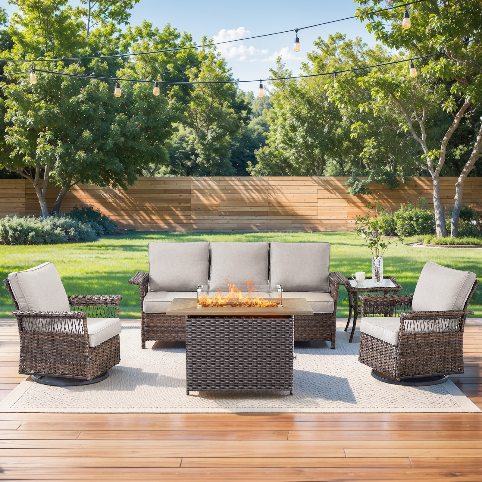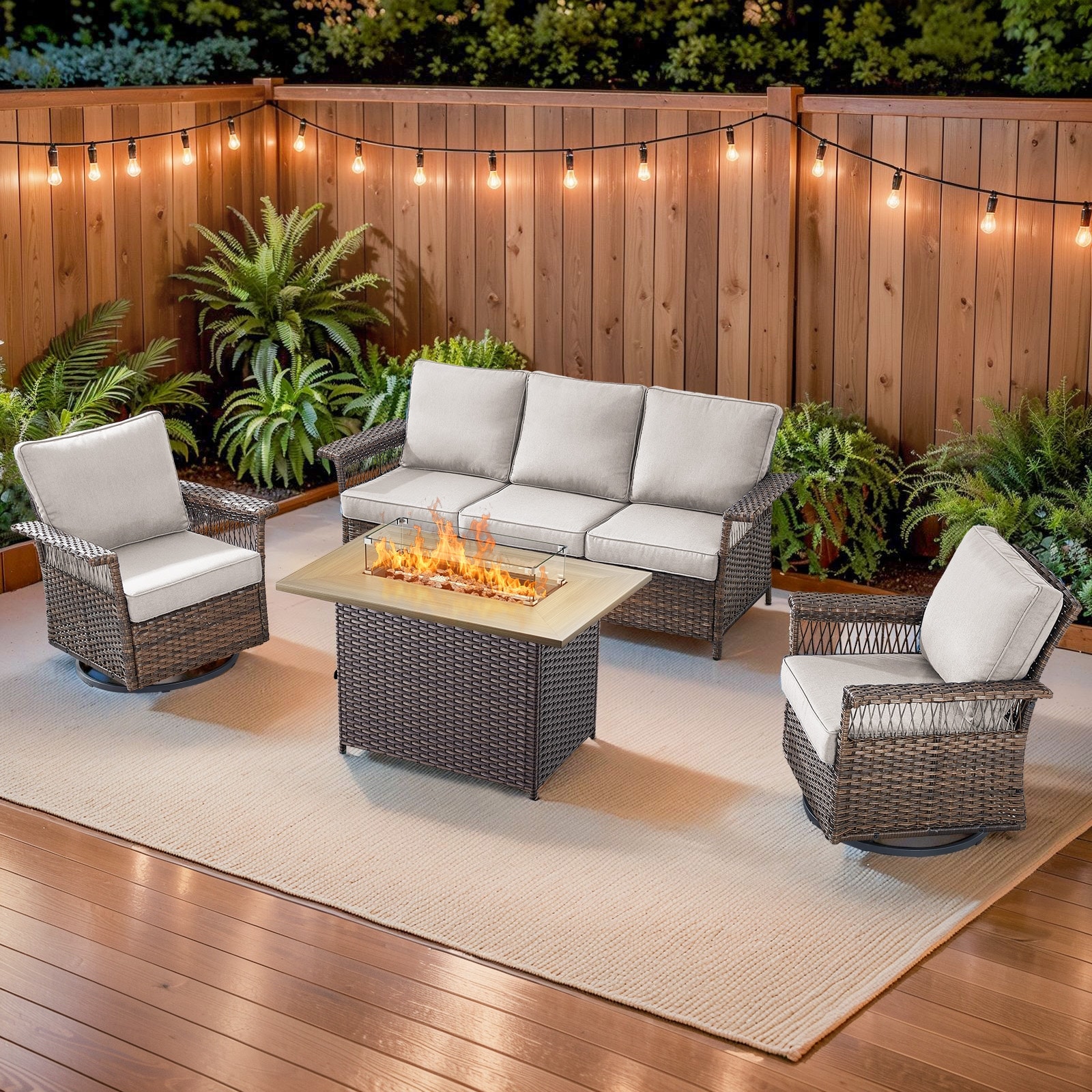 Pocassy 4 Pieces Outdoor 6" Sofa Swivel Chair with Fire Pit Table