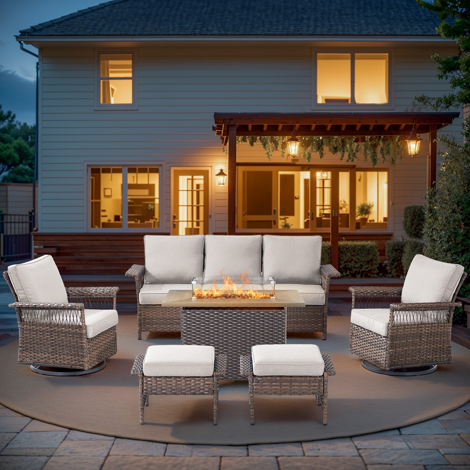 HOOOWOOO 9-piece Wicker Patio Furniture Swivel Rocking Chair Set with Fire Pit