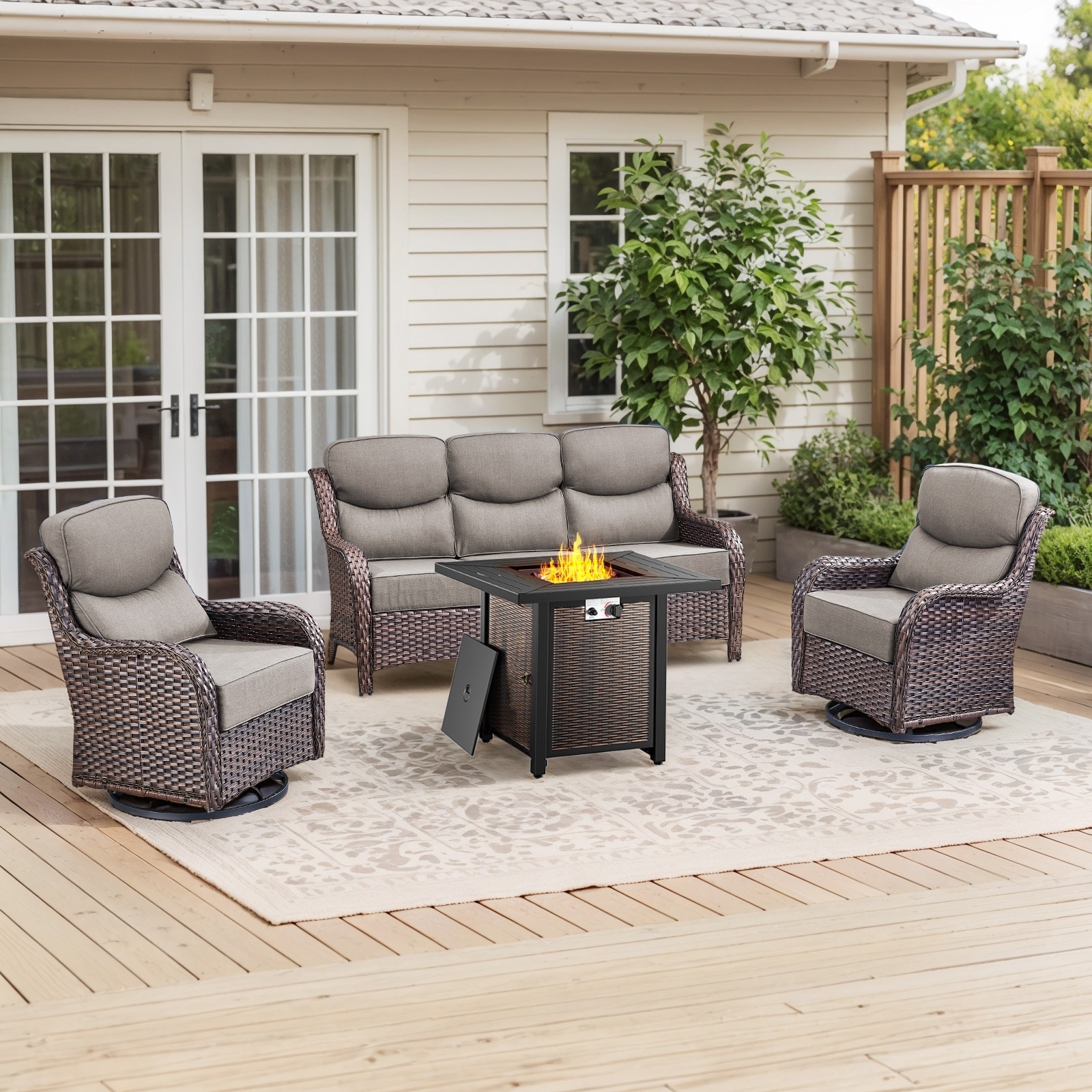 Pocassy 30 Inch Fire Pit Table with Sofa Swivel Chair Set