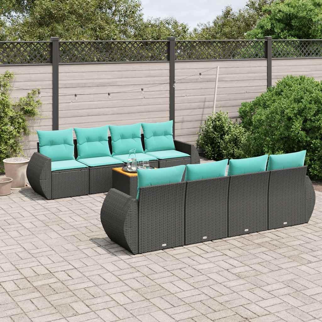 vidaXL 9 Piece Patio Sofa Set with Cushions Black Poly Rattan - 21.7x 24.4x 27.2