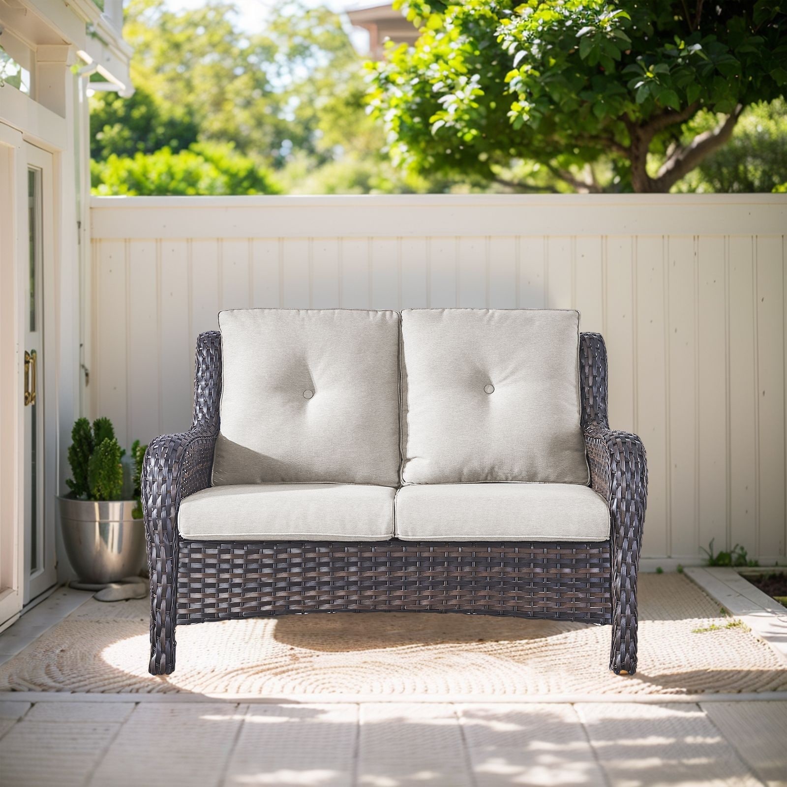 Outdoor Loveseat Sofa 2-Seat Sofa Brown-Beige - Brown