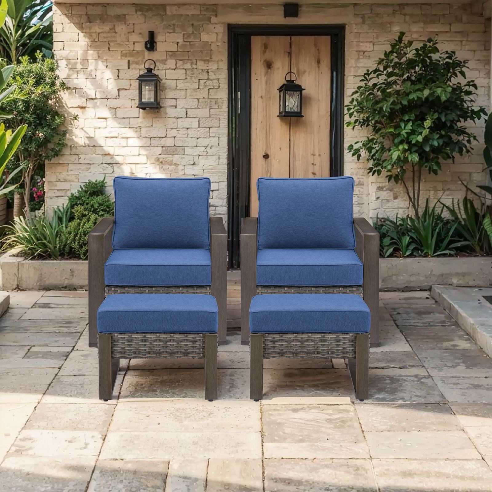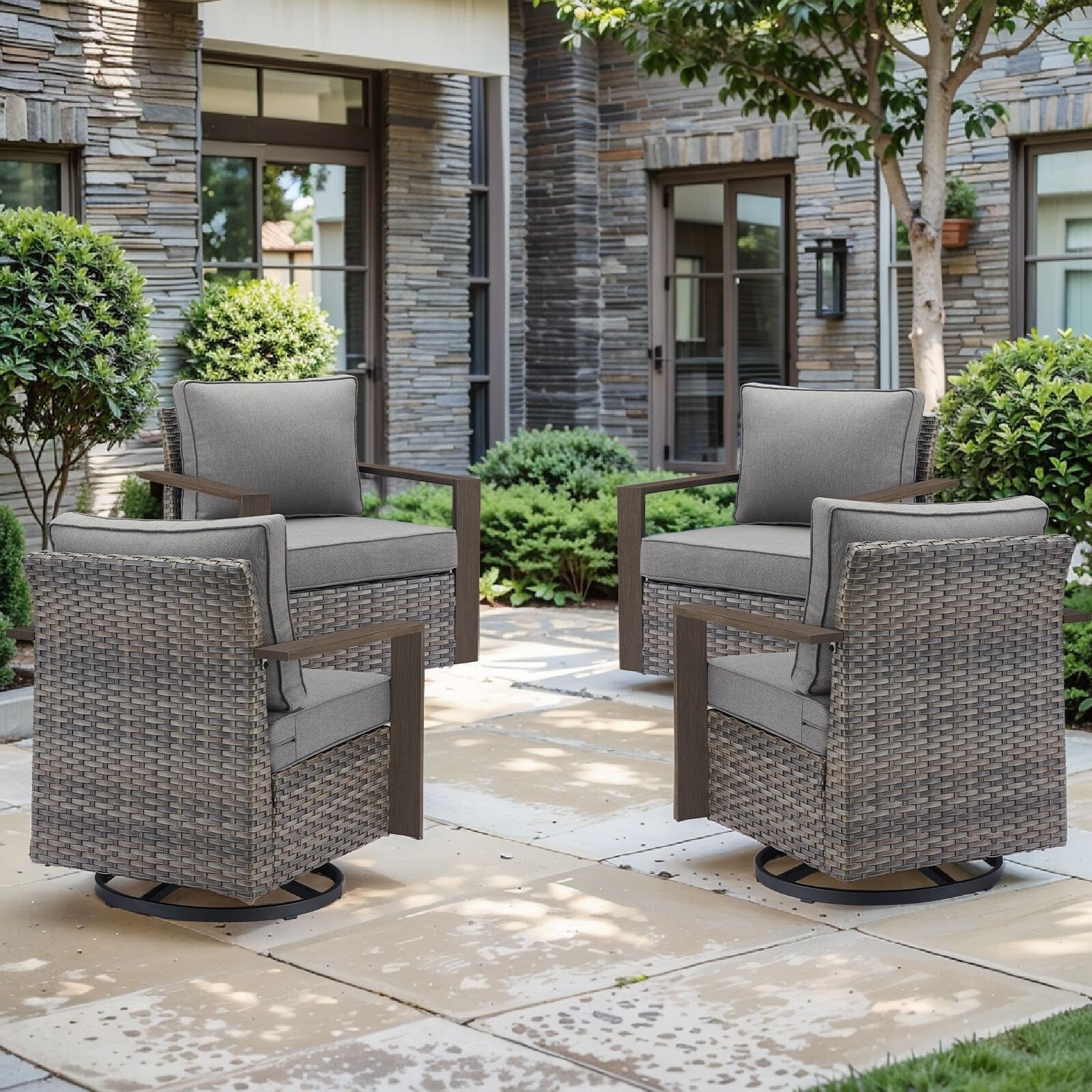 Pocassy 4 Pieces Outdoor Patio Swivel Chair Ottoman Set