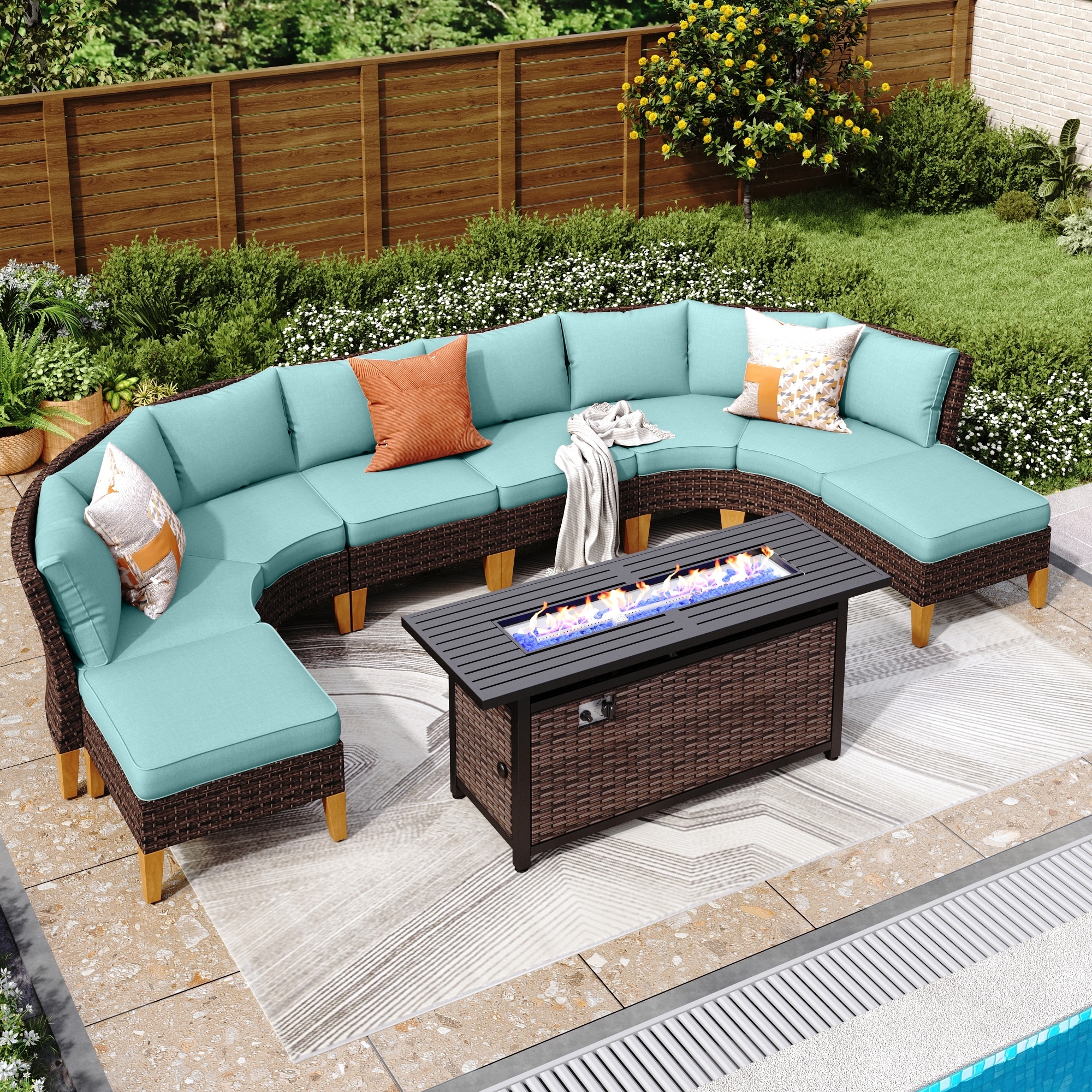 6-11 Piece Patio Outdoor Wicker Sectional Sofa Half-Moon Furniture Set Large Seating Conversation Sets with Fire Pit Table