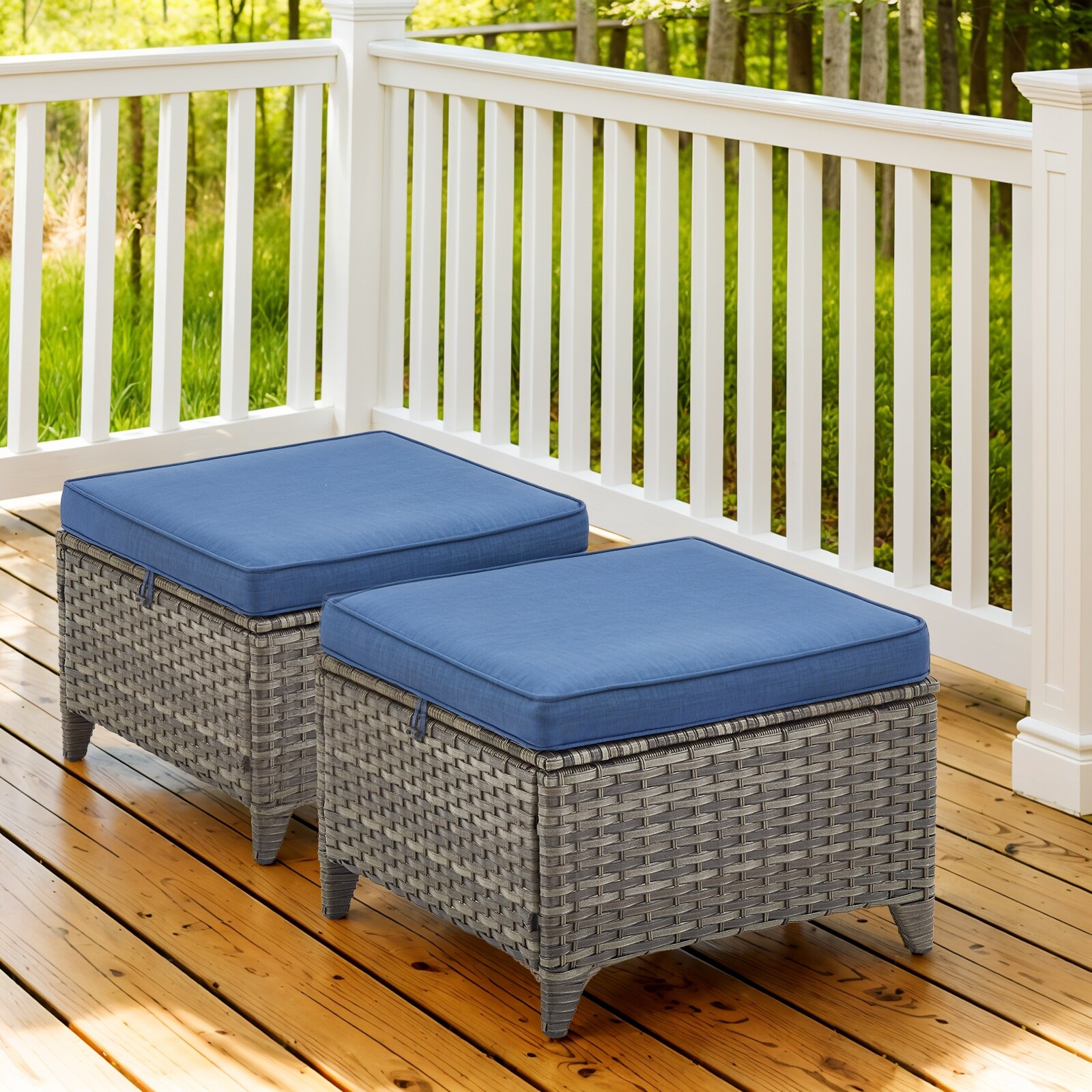 Gymojoy Outdoor Wicker Patio Ottomans Set Rattan Footrests