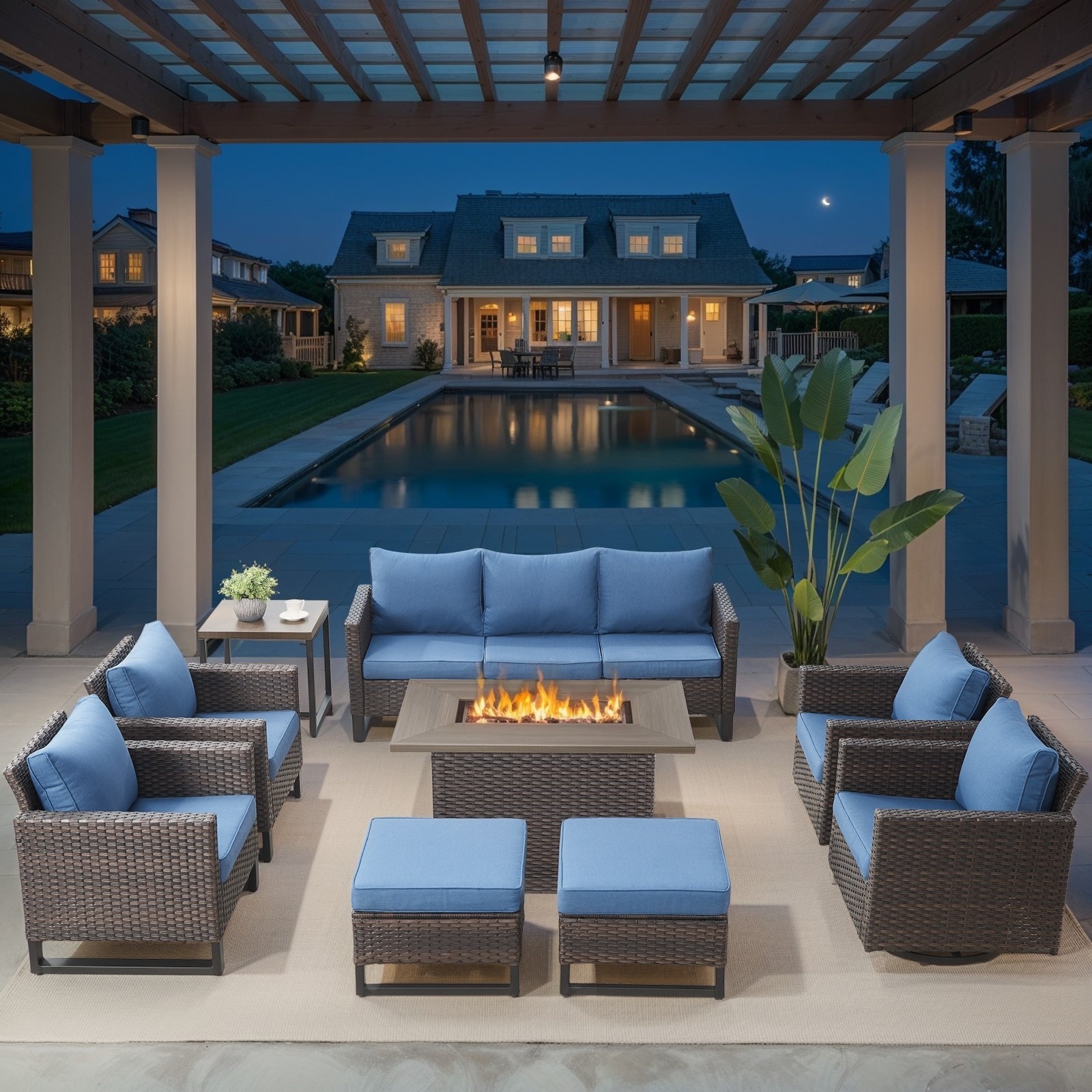 XIZZI 8-piece Patio Wicker Furniture Sectional Set with Firepit