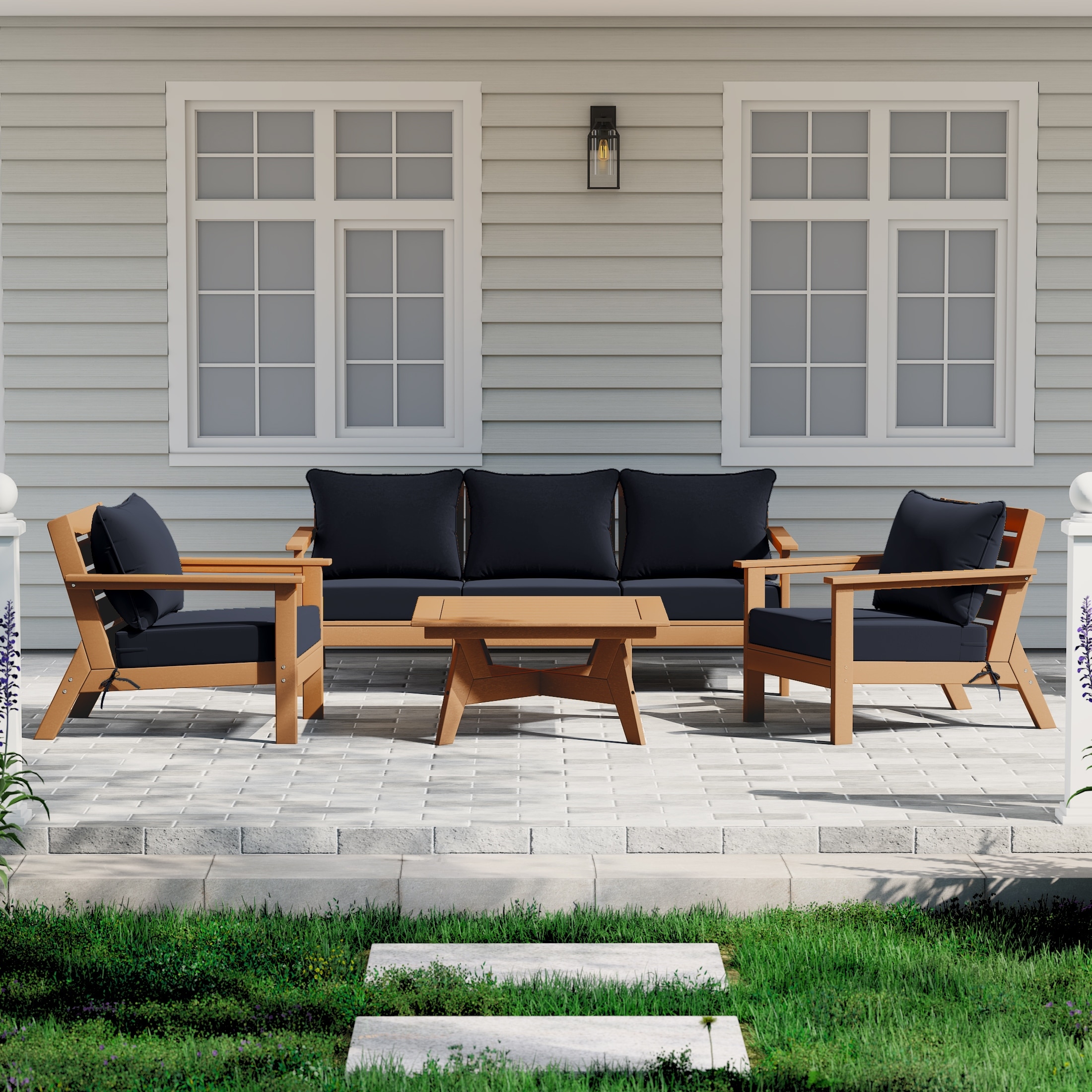 Birchwood All Weather HDPE Outdoor Patio Teak Deep Seating Conversation Set (6-Piece Set)