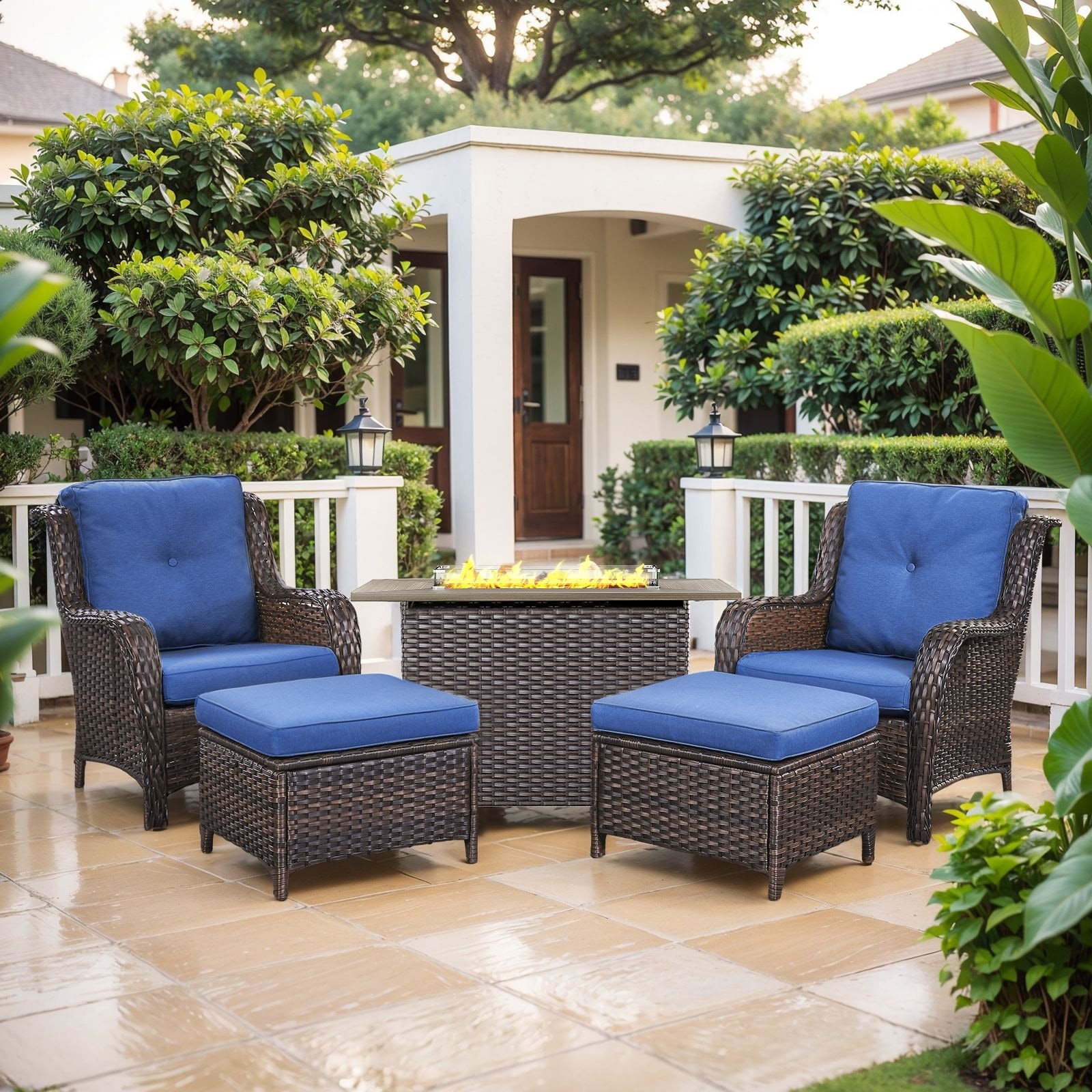 Fire Pit Table with Patio Chairs Ottomans Brown-Blue - Brown