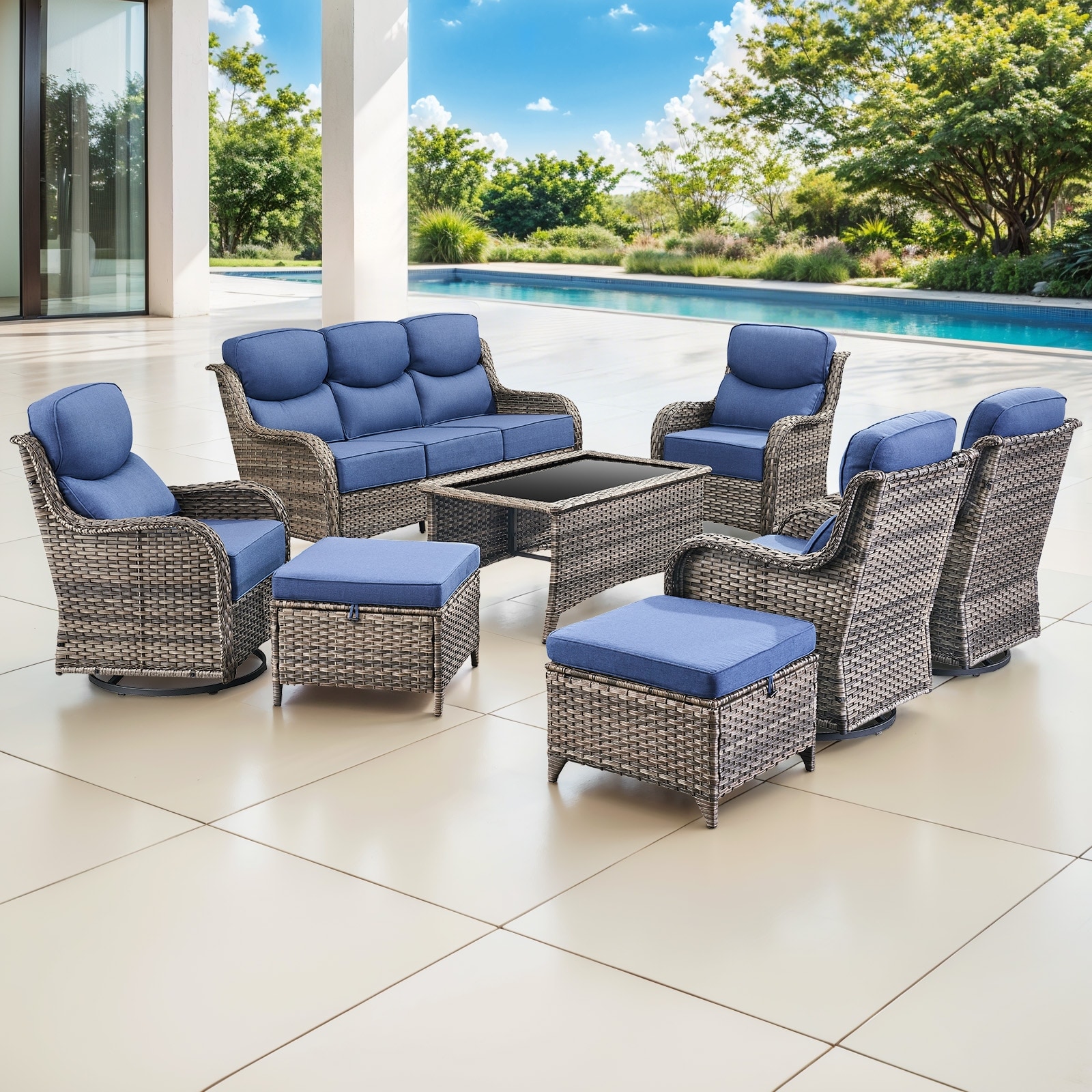 Gymojoy 8-Piece Patio Furniture Set with Swivel Glider Chairs, 6-Inch Ultra-Plush Cushions & Water-Resistant Olefin Fabric