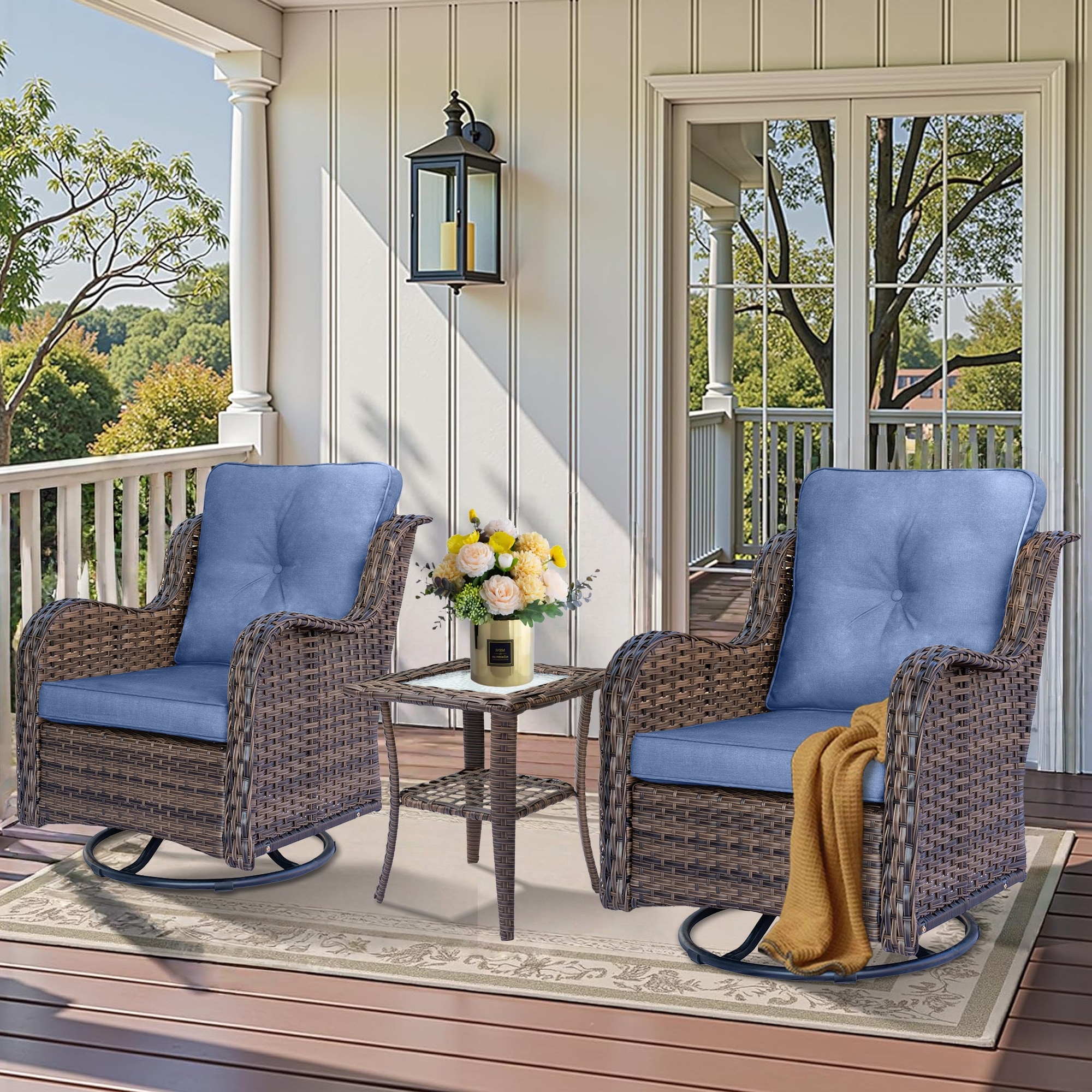 UPHA Wicker Outdoor Rocking & Swivel Chair 2-Piece Set with Cushions
