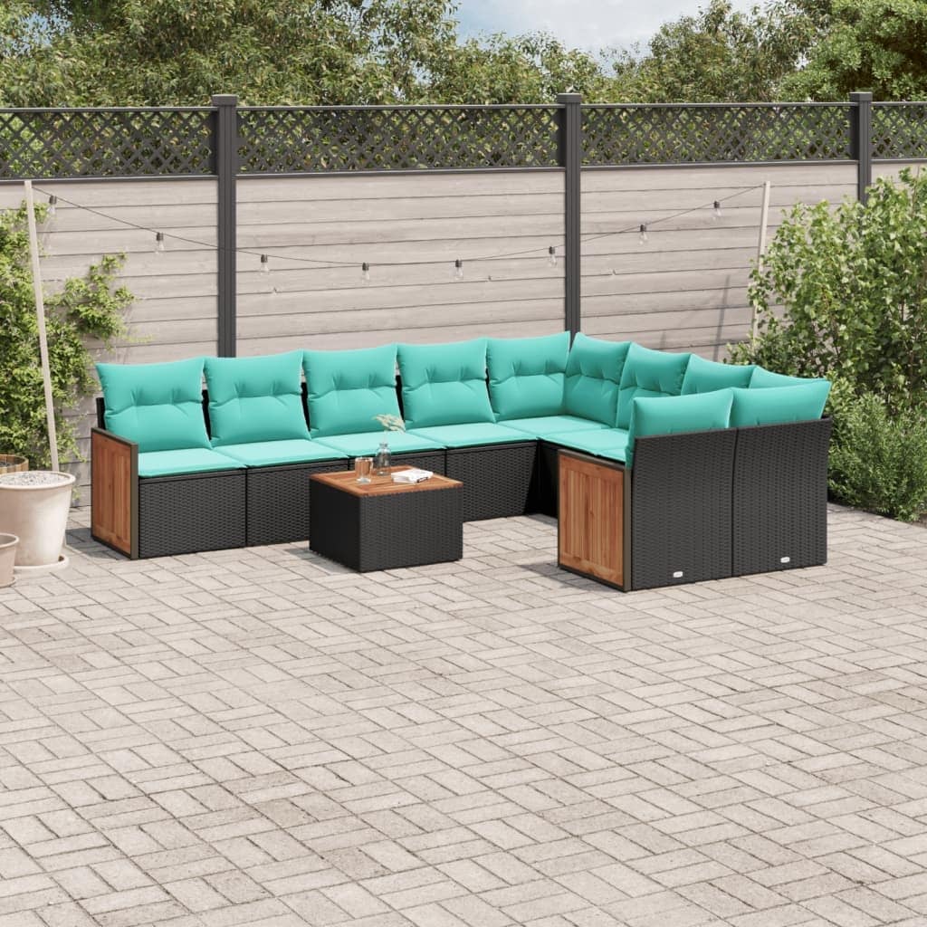 vidaXL 9 Piece Patio Sofa Set with Cushions Black Poly Rattan