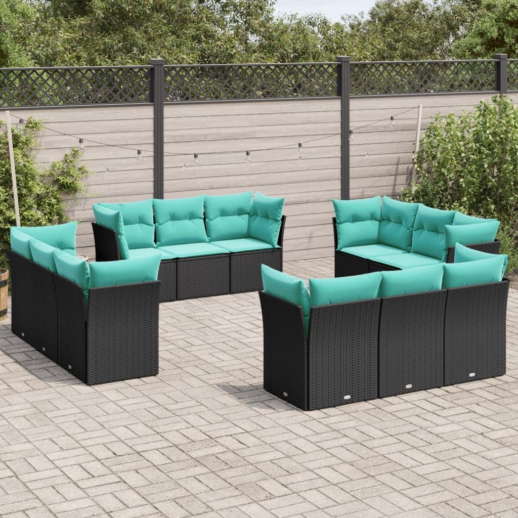 vidaXL 12 Piece Patio Sofa Set with Cushions Black Poly Rattan