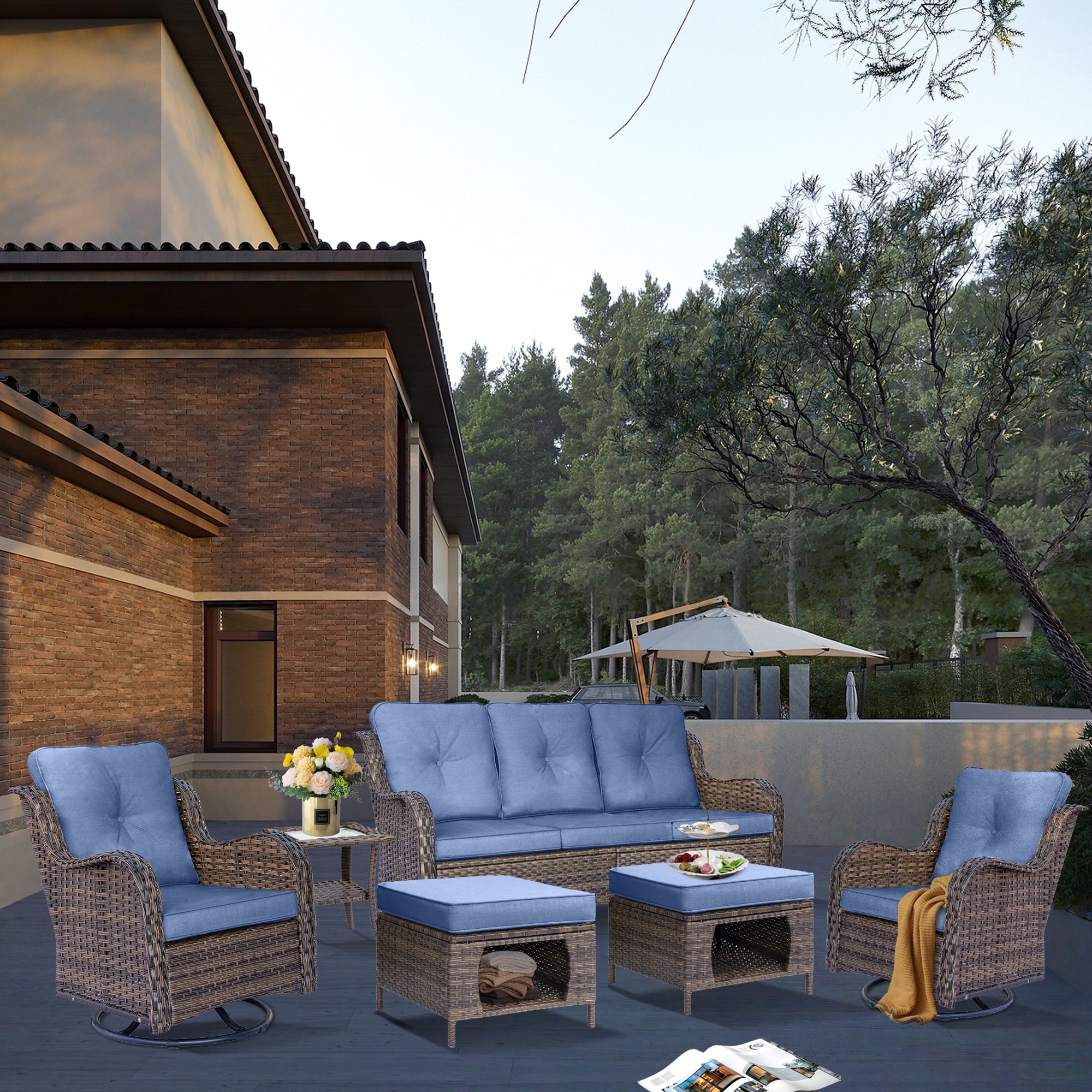 Gray Wicker Outdoor Patio Conversation Seating Sofa Swivel Chair Sets