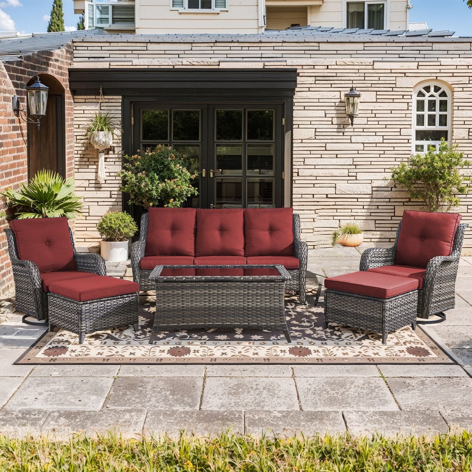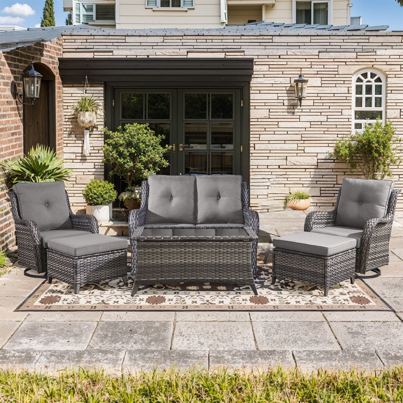 6PCS Outdoor Sofa Glider Chair with Ottoman