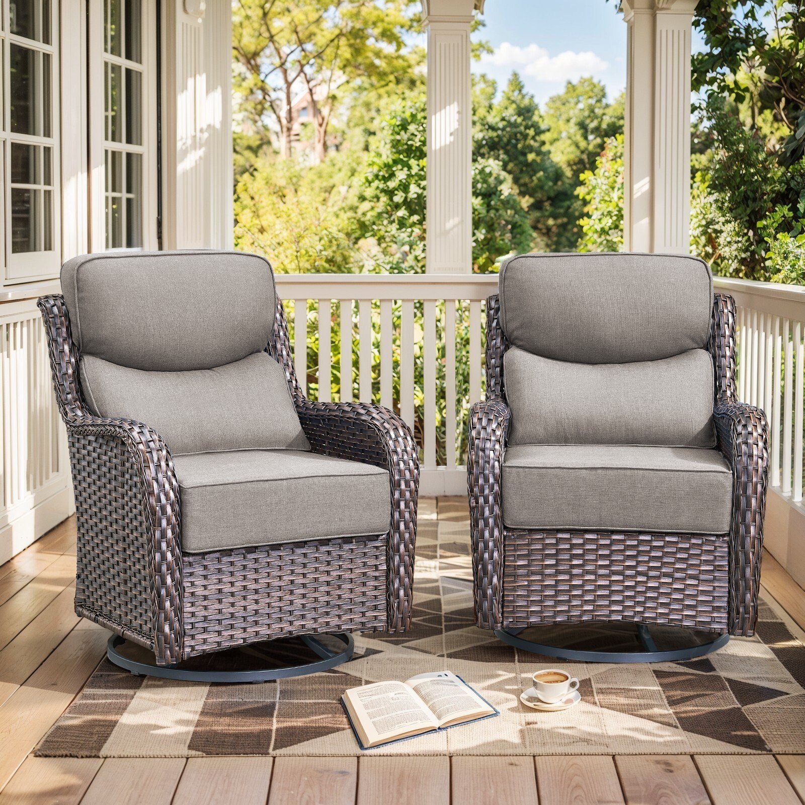 Outdoor Swivel Glider Rattan Chair Set