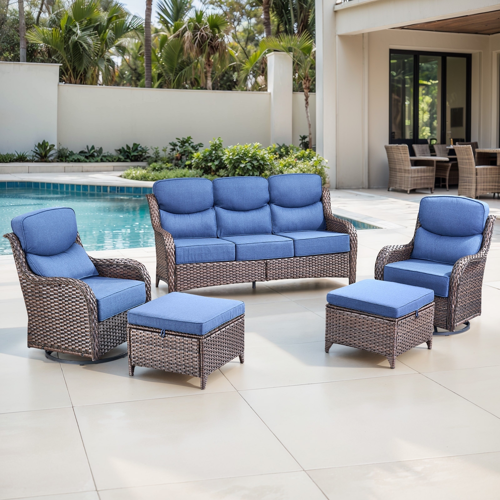 Gymojoy 5-Piece Patio Furniture Set with Swivel Glider Chairs, 6-Inch Ultra-Plush Cushions & Water-Resistant Olefin Fabric
