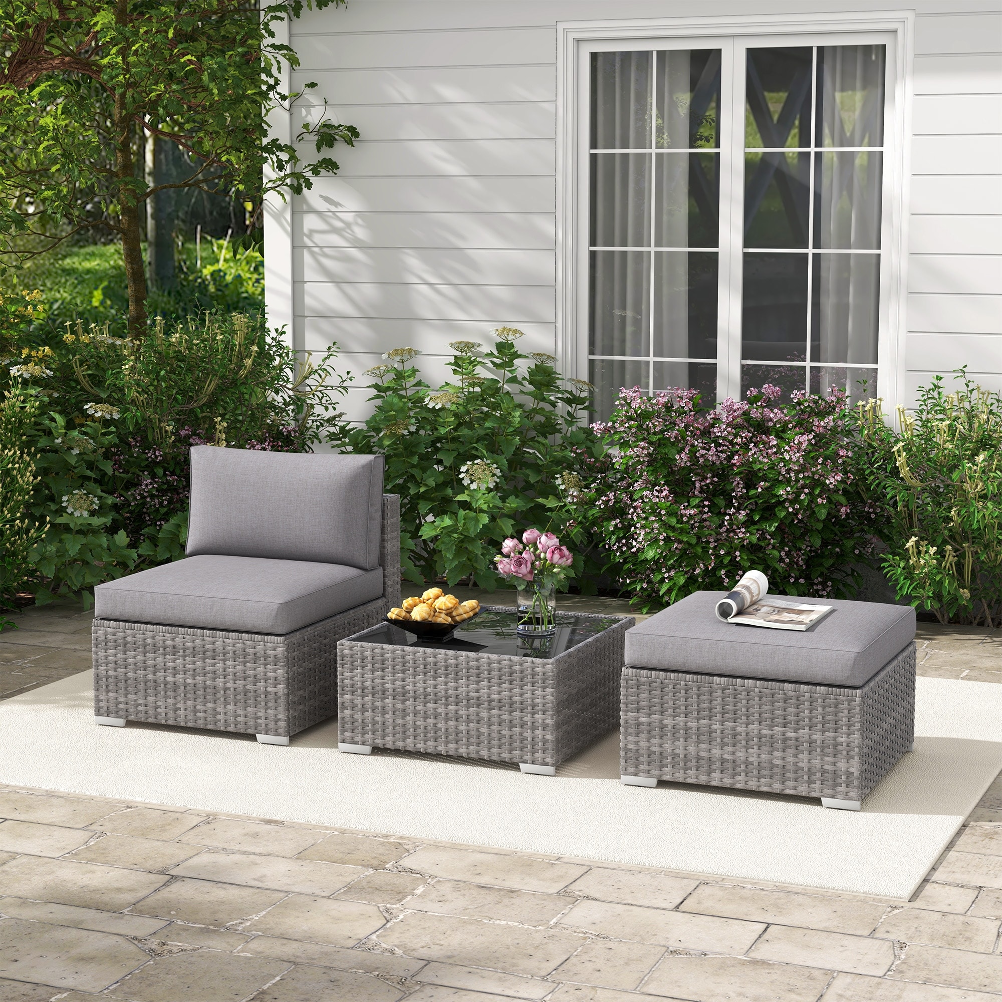 Outdoor 3-Piece Wicker Sofa Set with Ottoman
