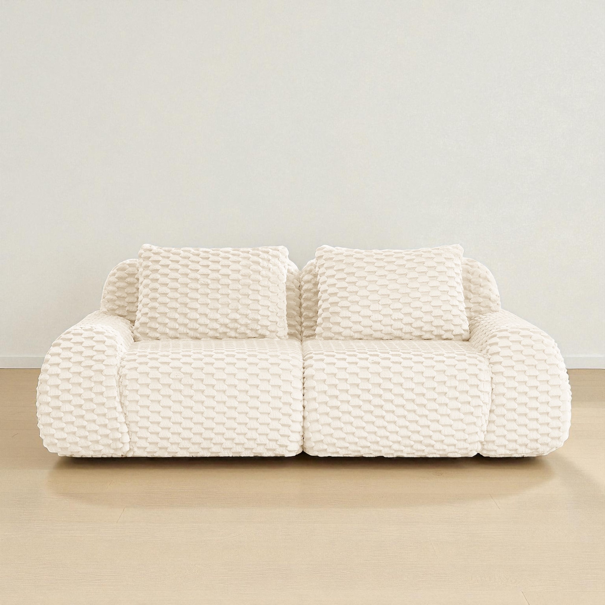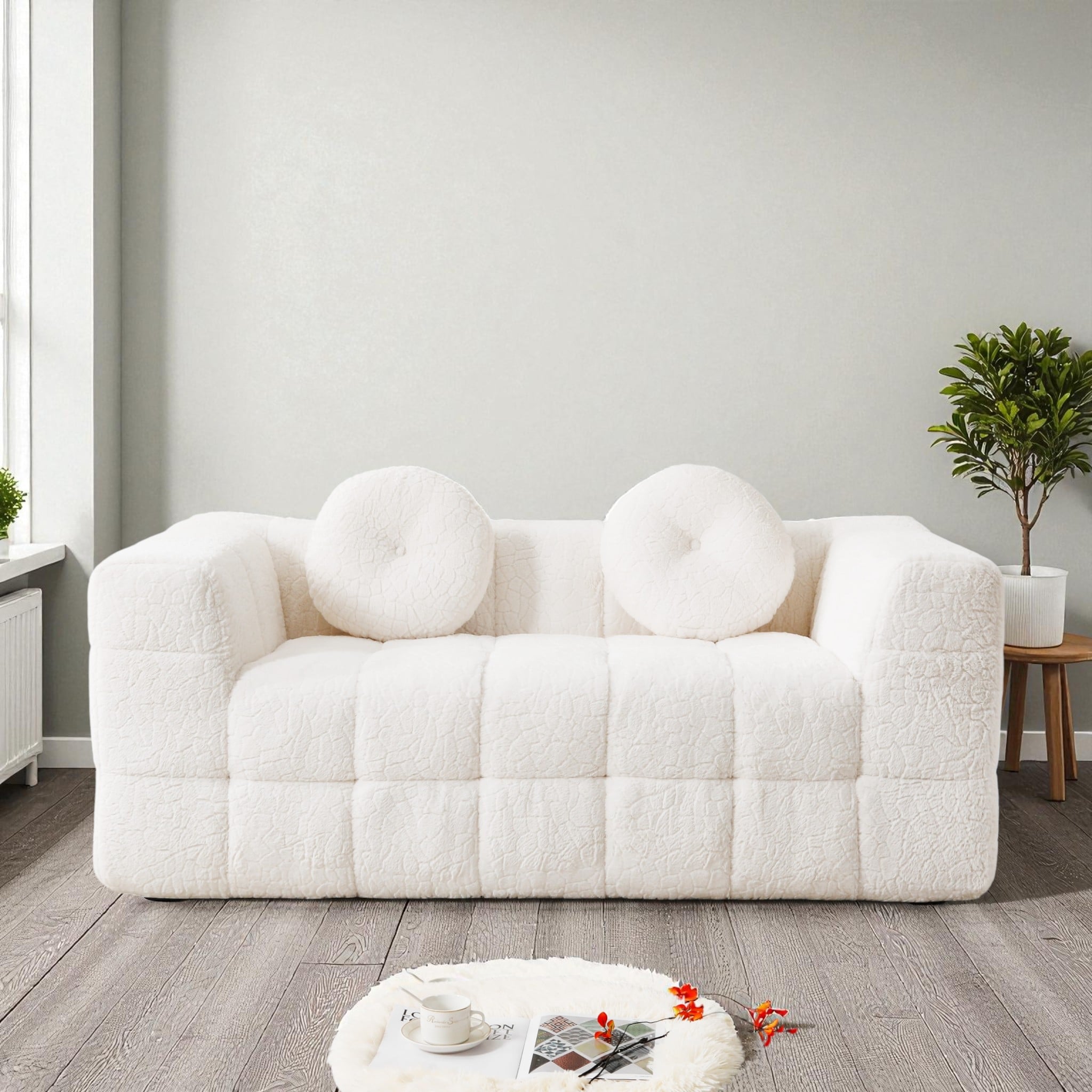 66.5" Modern Boneless Cloud Sofa, 2-Seater Foam Couch with Checkered Design & Plush Lychee-Textured Fabric, Circular Pillows