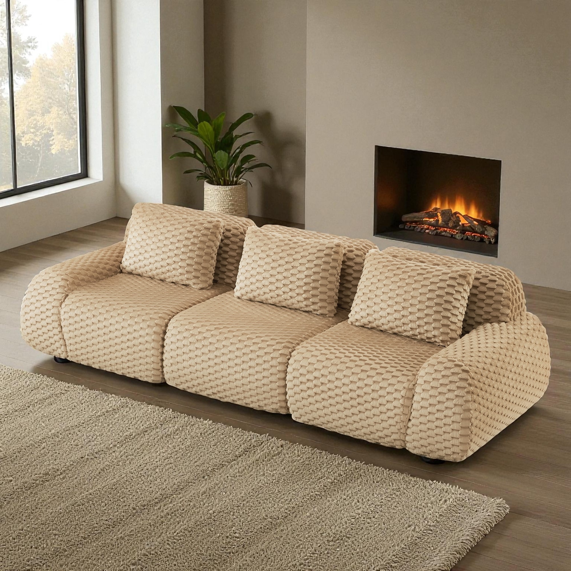 114" Modern Modular Flannelette Sectional Sofa, Oversized 3-Seater Deep Seat Boneless Couch with Buckle Connection