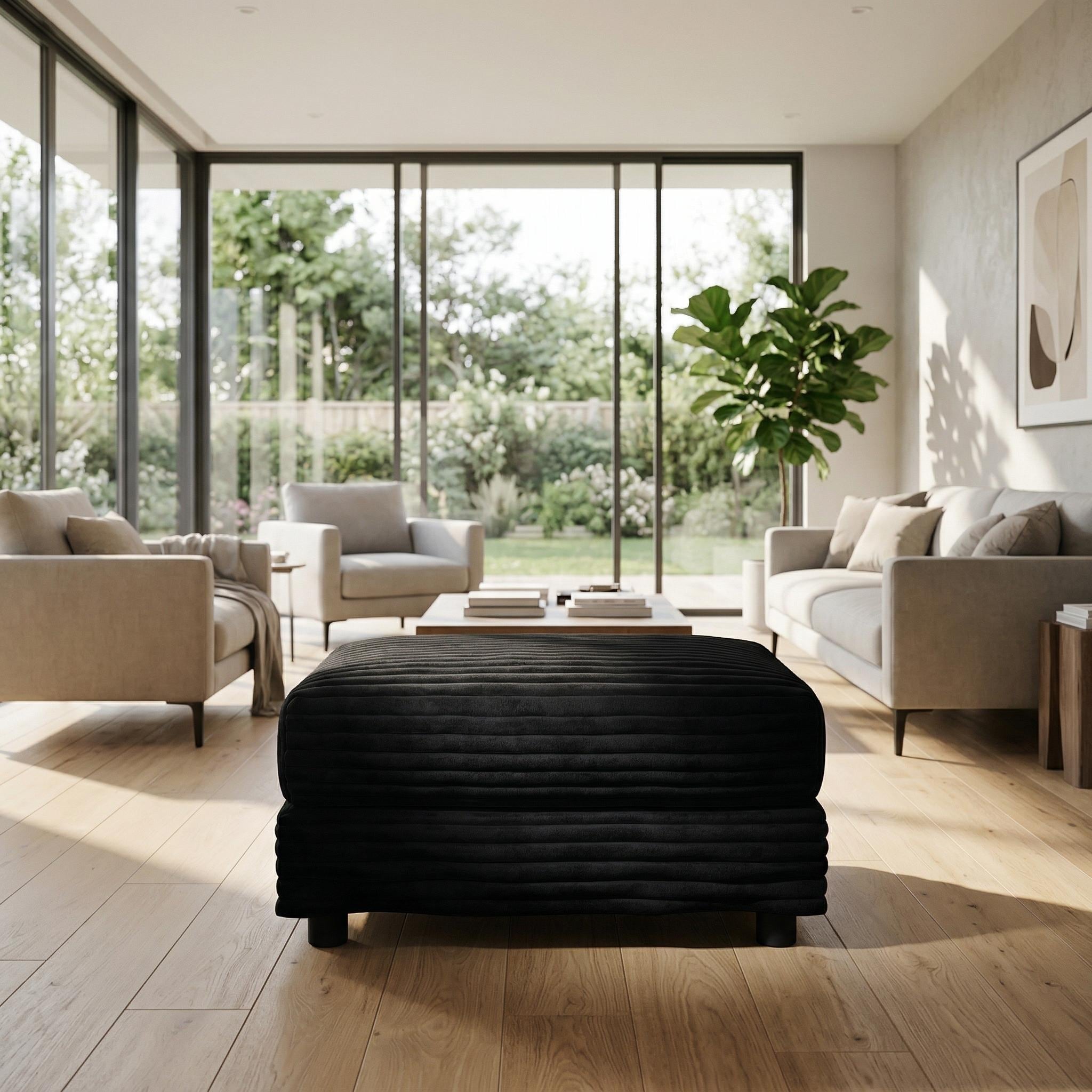 Homy Casa Plush Corduroy Ottoman Footrest Upholstered Soft Cushion Seat for Sofa Set Living Room Bedroom Beige Grey Black