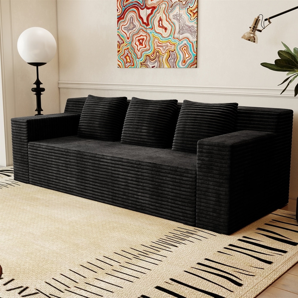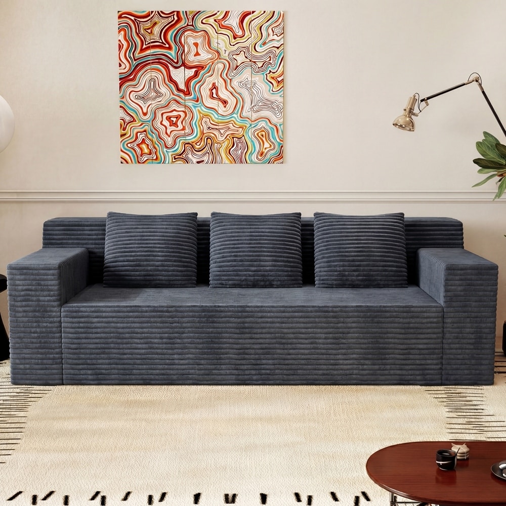 Streamlined Design Modular 3 Seat Boneless Velvet Fabric Sofa - 8' x 10'
