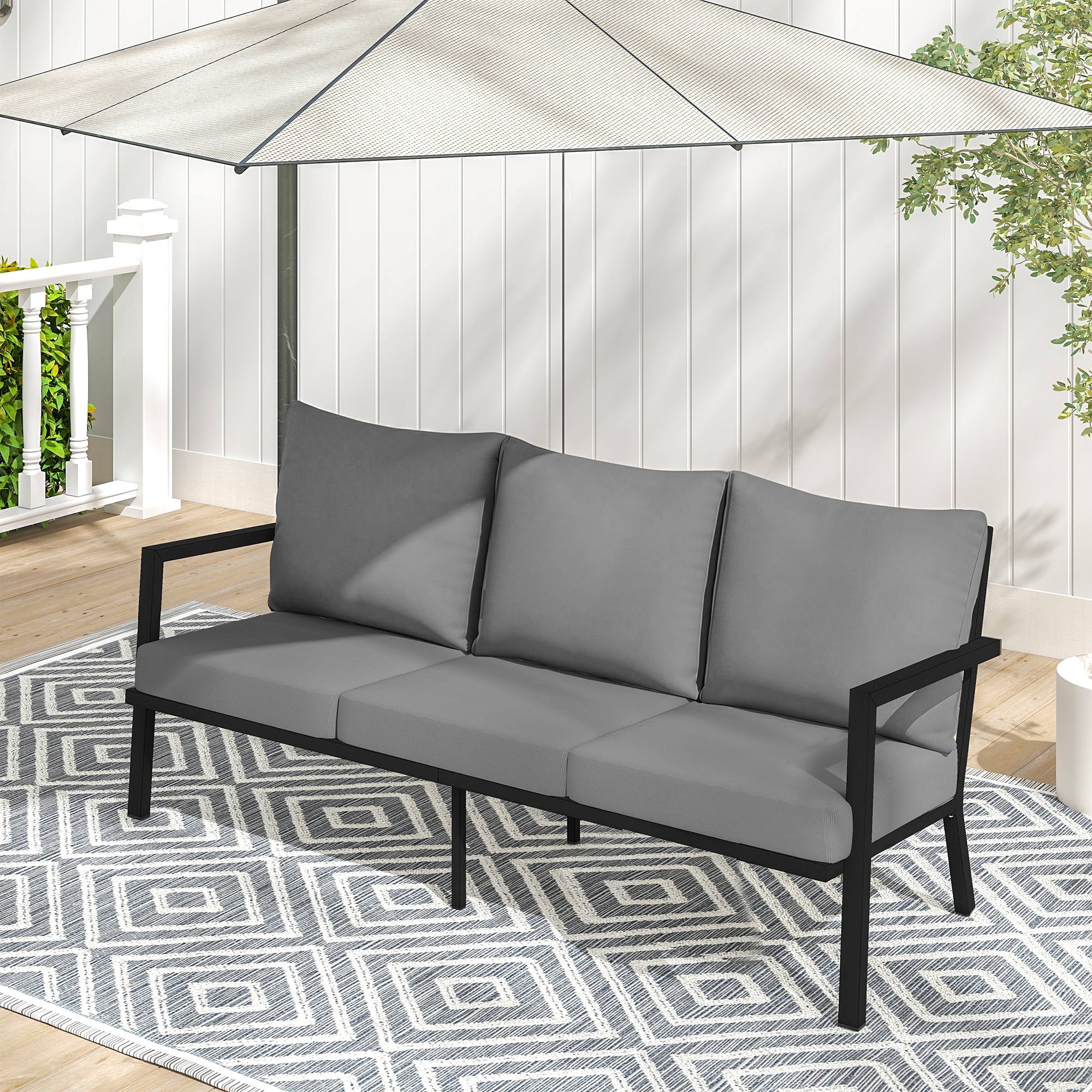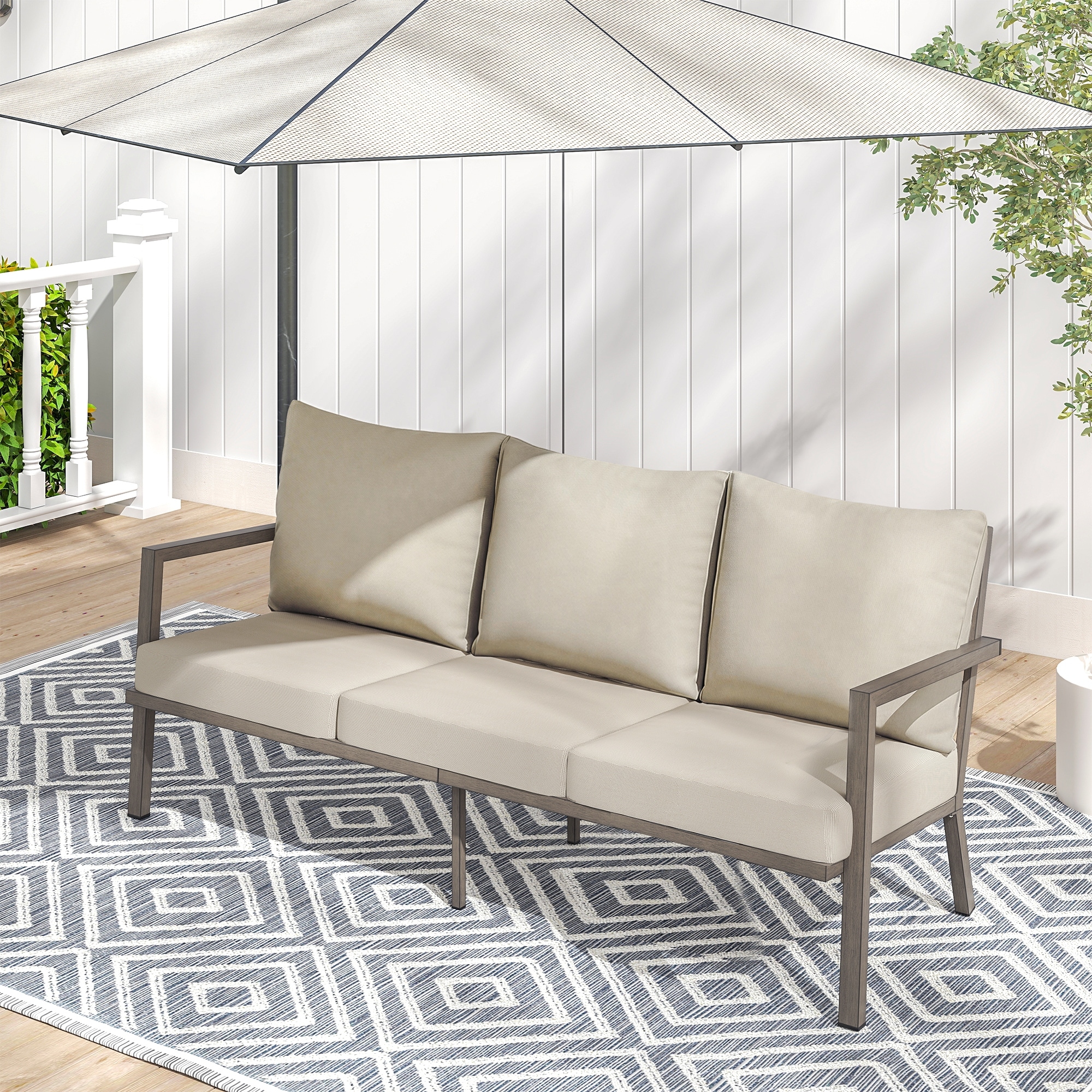 MornLift 1-Piece Aluminum Outdoor Sofa with Beige Cushions