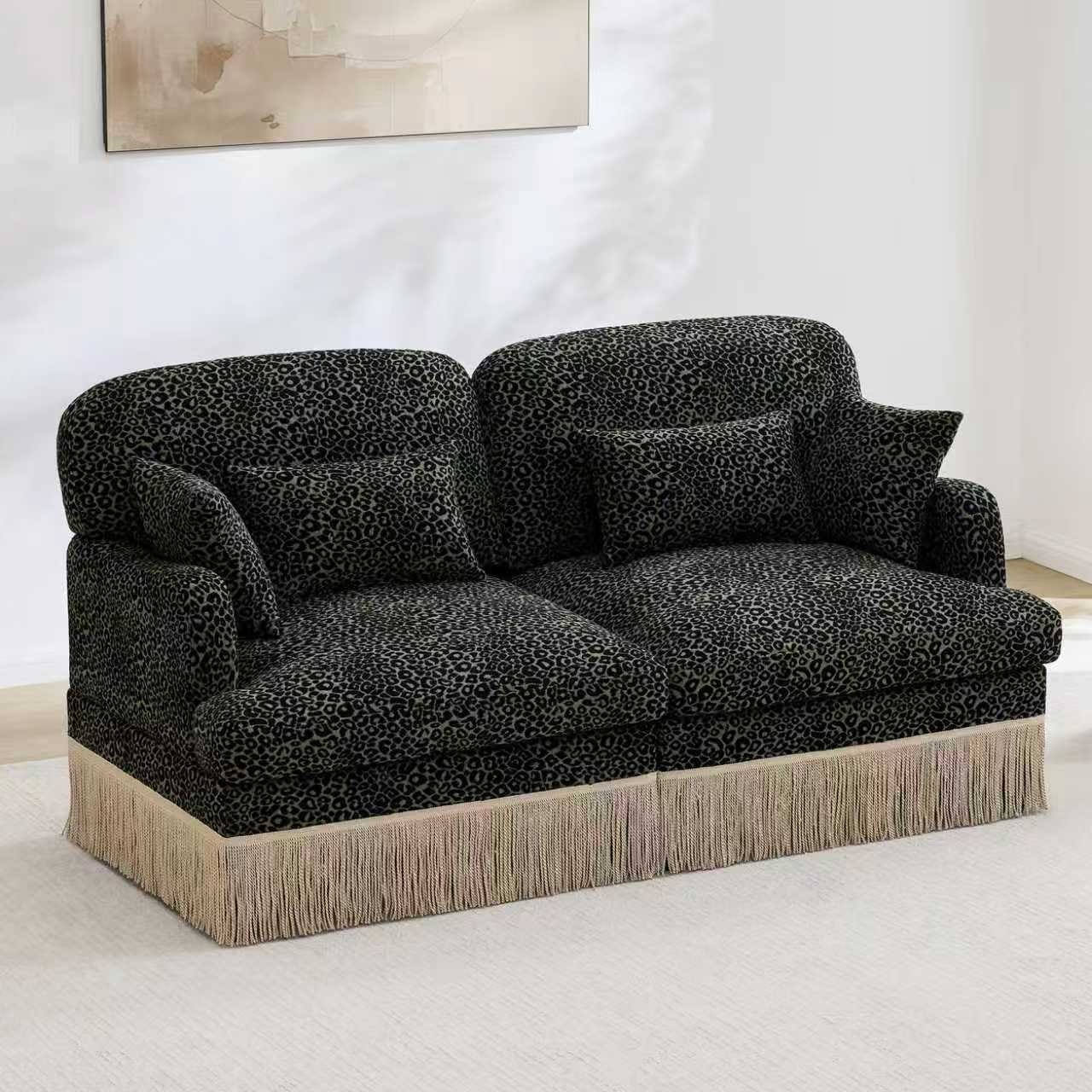 Chenille Leopard Print Modular Loveseat Sofa with Ergonomic Design