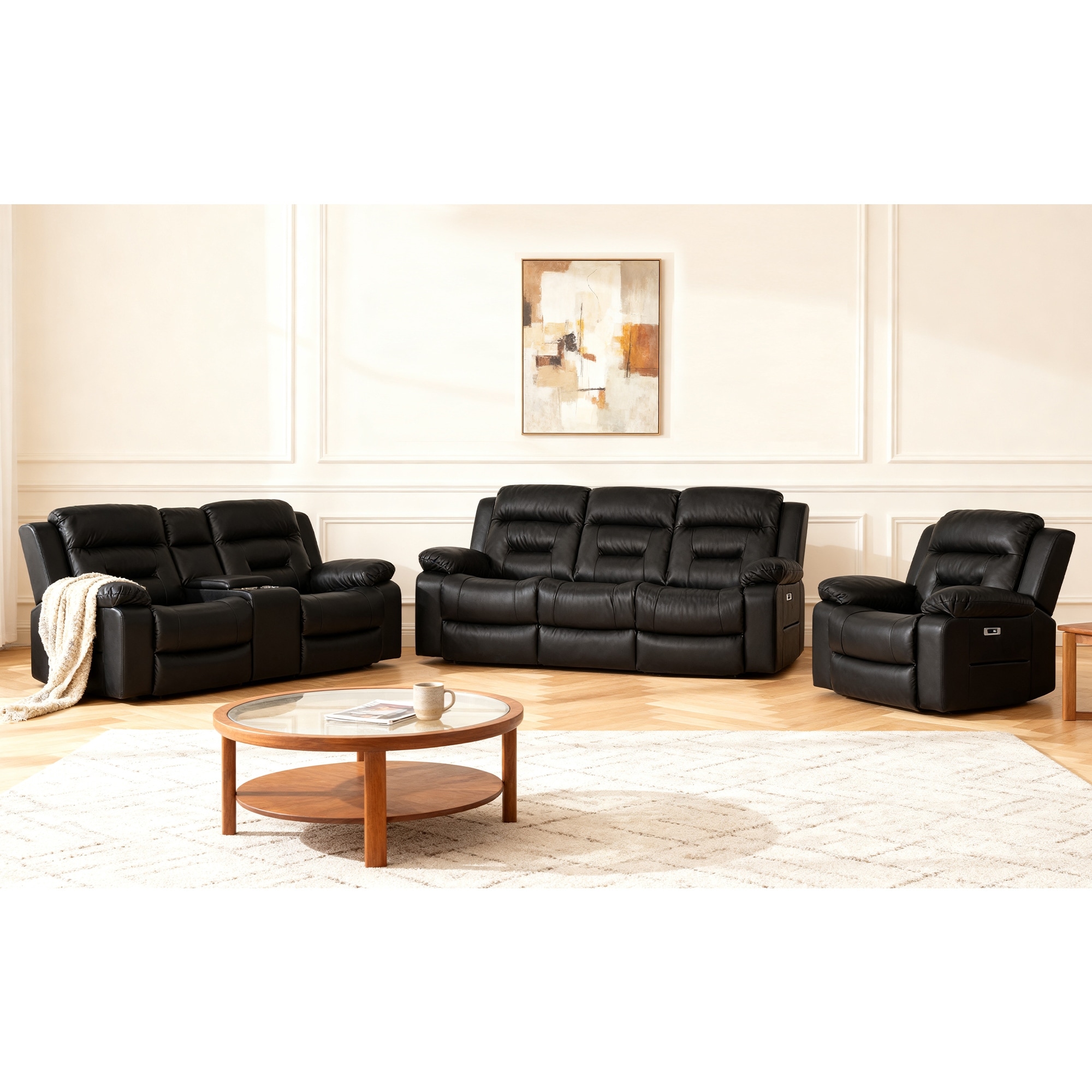 3-Piece Faux Leather Modular Design Power Recliner Sofa Set with USB & USB-C Charging