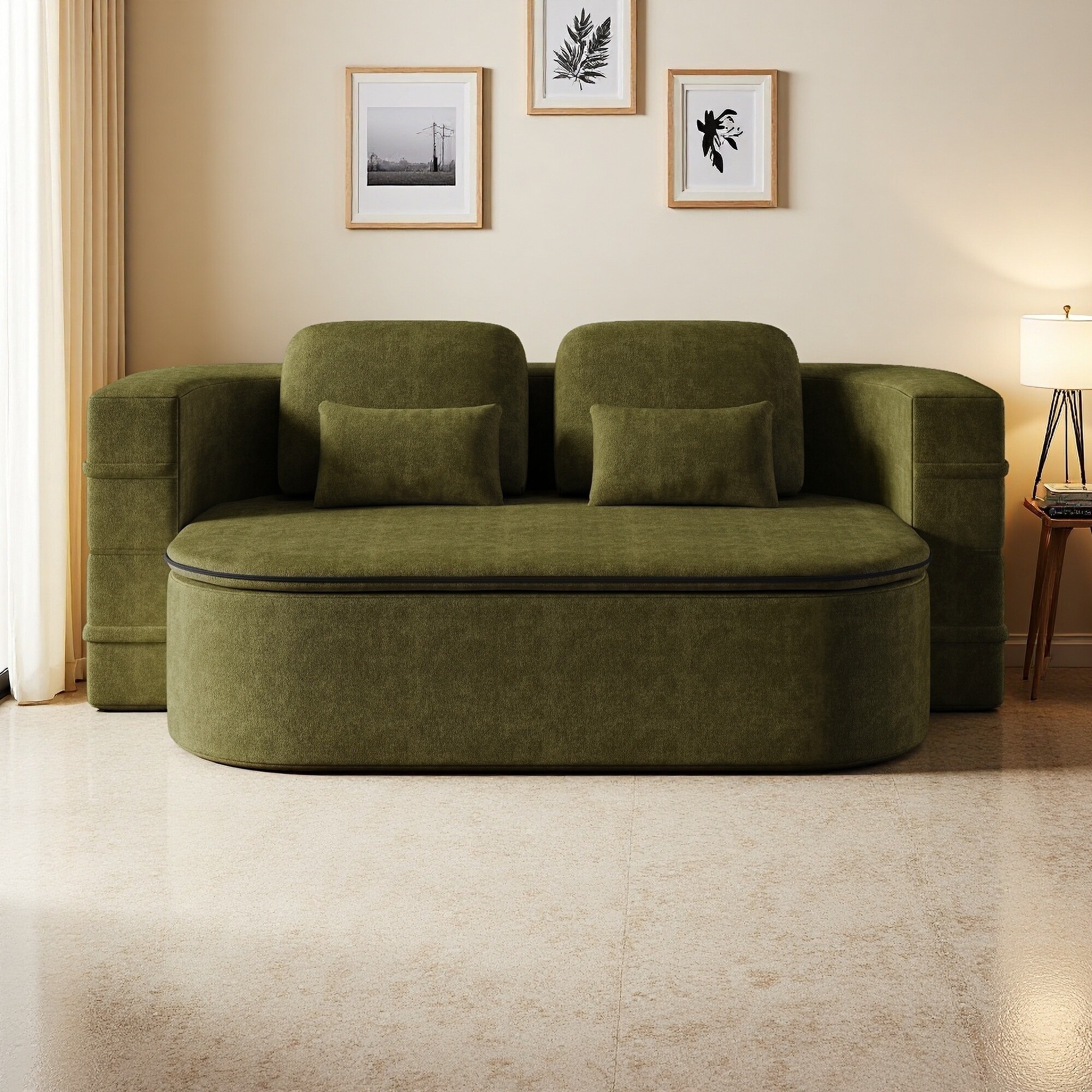 75" Plush Chenille Foldable 3-Seater Sofa Bed with Storage