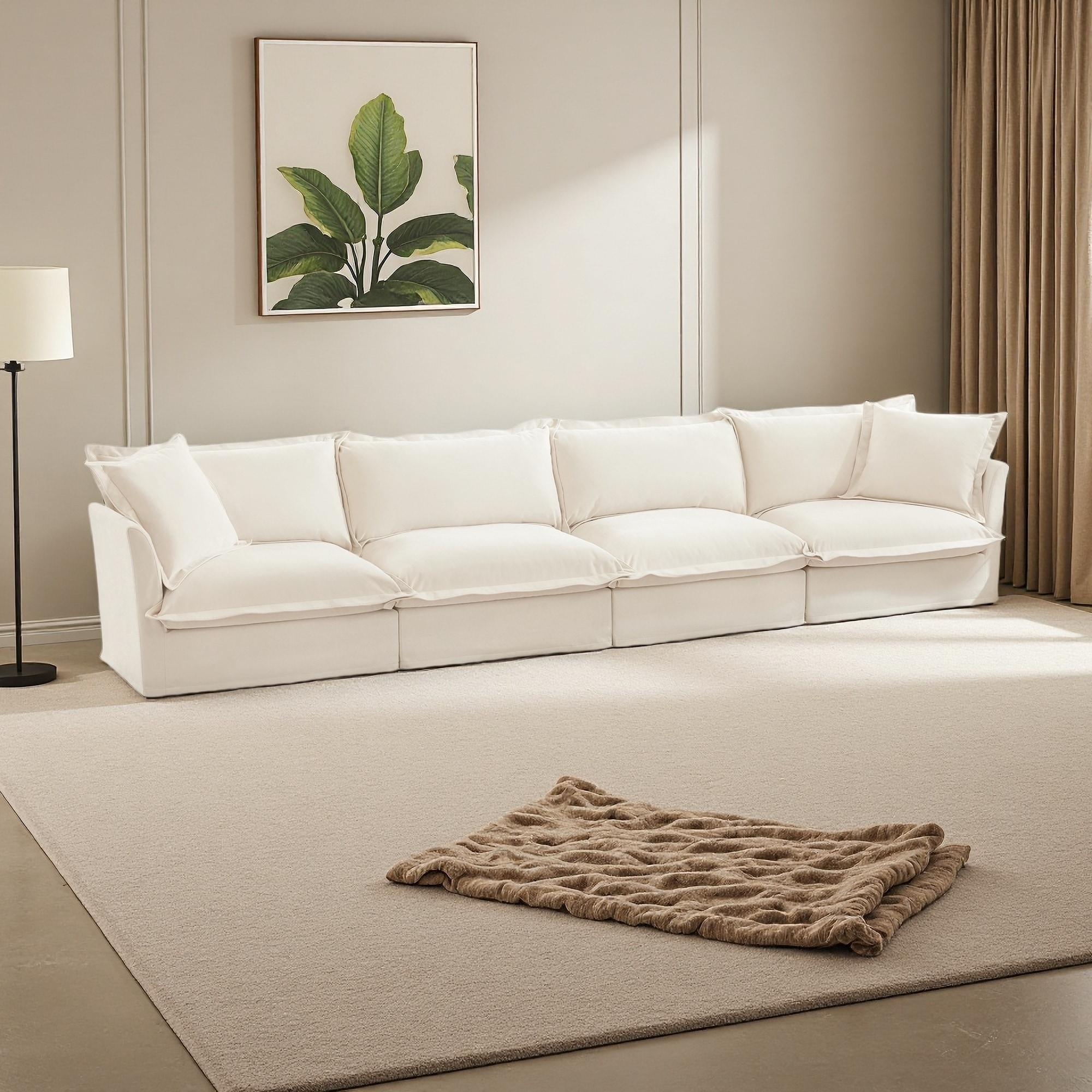 Roomfitters Modern Curved Flannelette Multi-Seater Sofa with Pillows, Creative Minimalist Design for Living Room