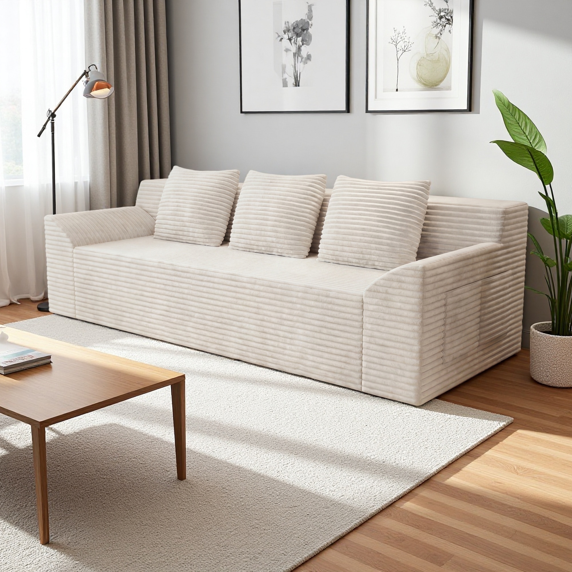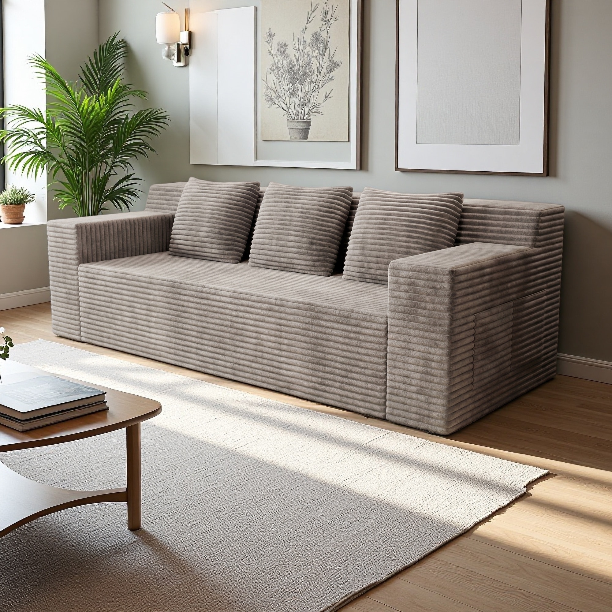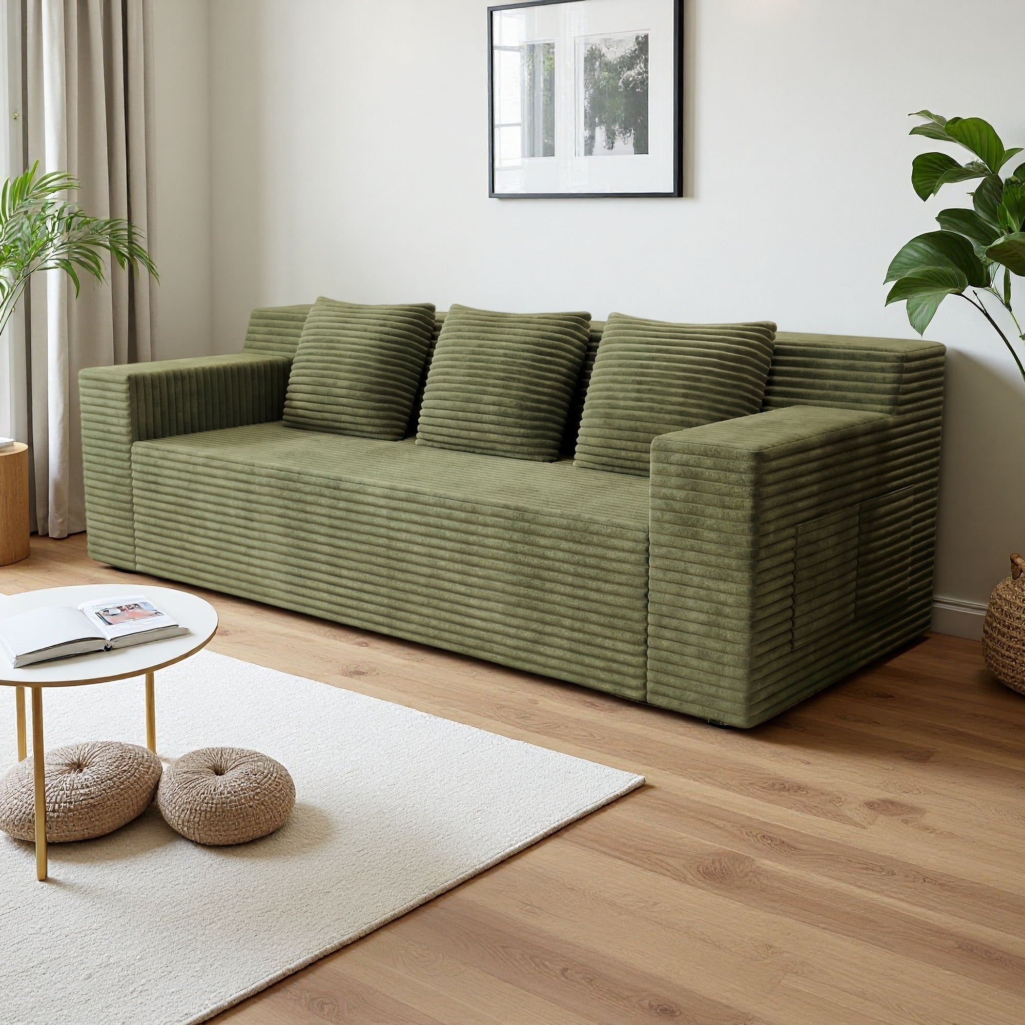 71" Corduroy Sofa with Button Tufting and No Assembly Required (3-Seater)