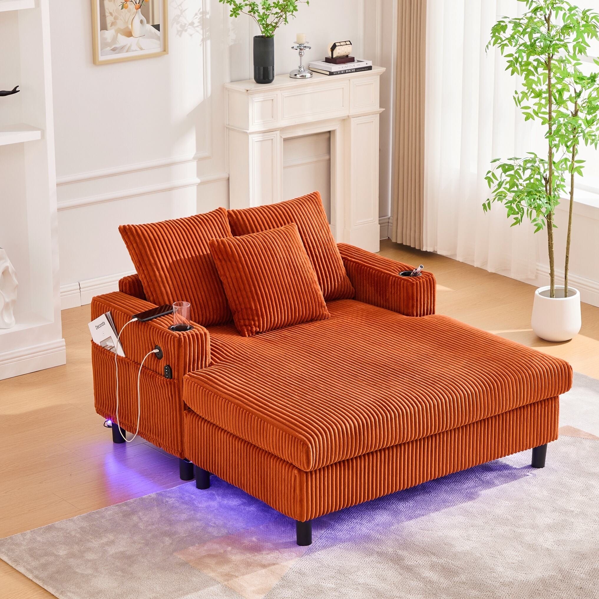 Modern Corduroy Oversized Recliner Sofa with Deep Seat, 3 Pillows, USB Charging, RGB LED Light Strip, Cup Holder, Side Pocket