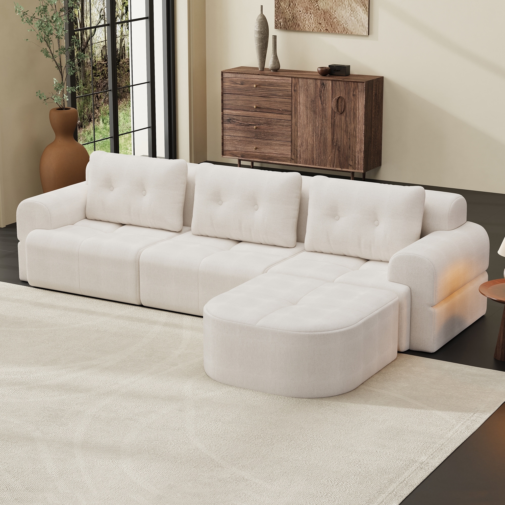 Roomfitters 82" Modular Sectional Sofa, Highly Textured Flannelette "Boneless" Couch with Deep Seating and Footrest