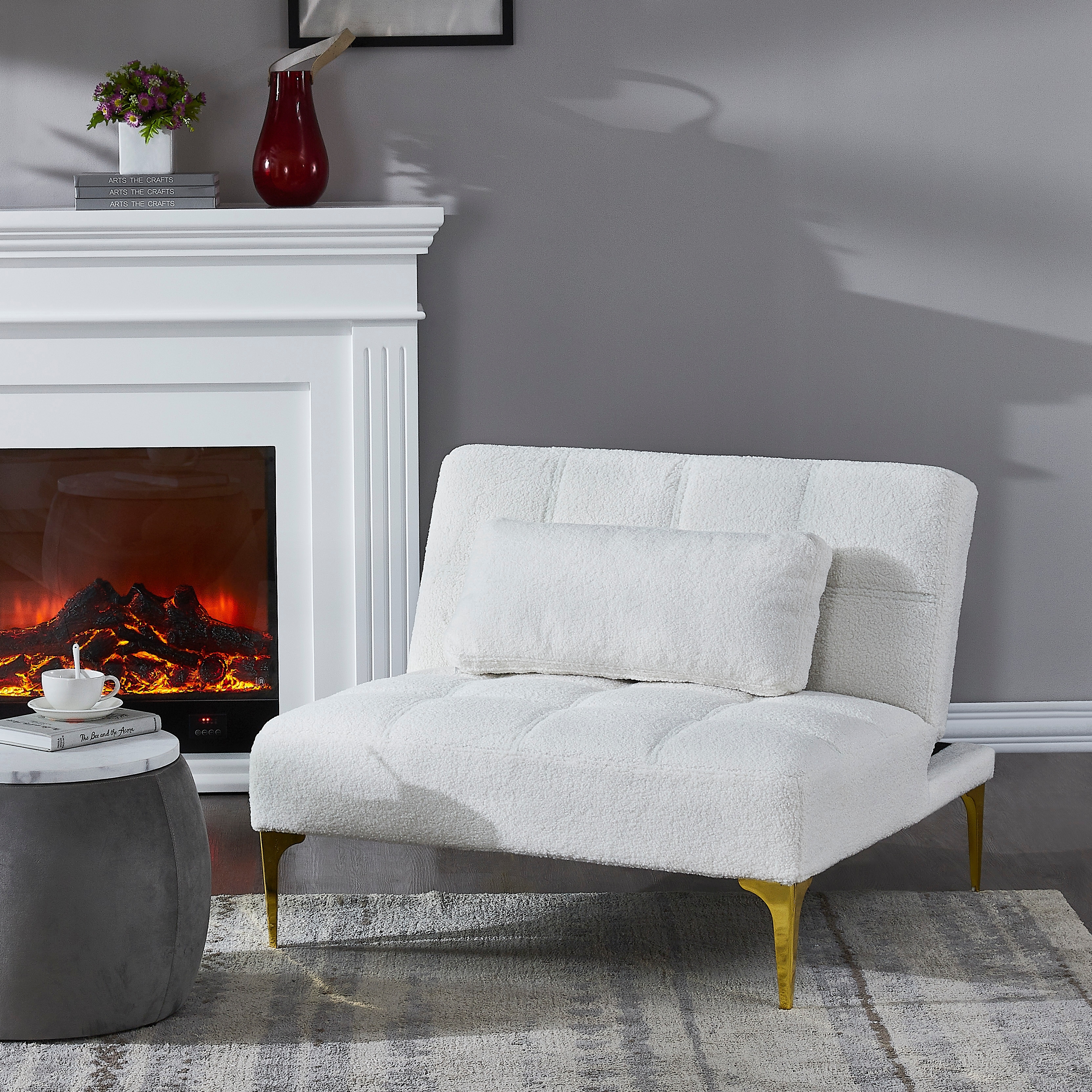 Anmytek Teddy Fabric Convertible Futon Sofa Bed with Gold Metal Legs