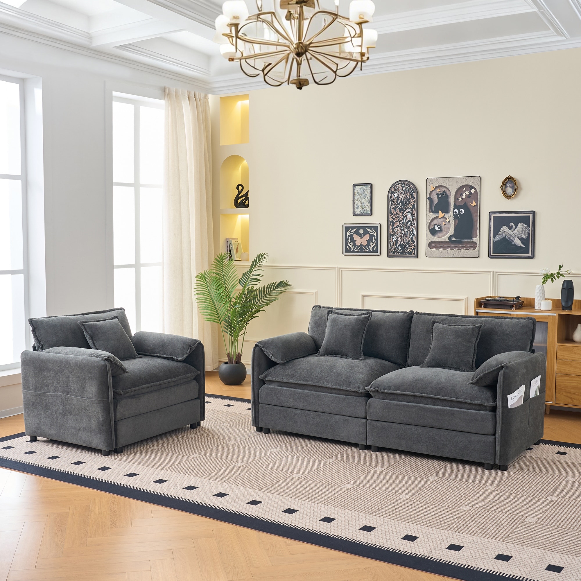 Multiple Layout Sectional Sofa Set, DIY Oversized Modular Couch for Living Room Dual-layer Cushioned Cloud Couch Deep Seat